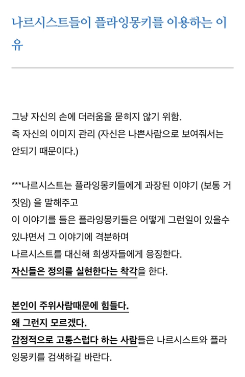 우리 나르시시스트는 나르가 아니야 피해자일뿐이야