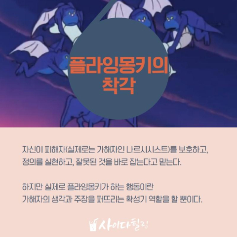 플라잉몽키들이 생기는 이유 = 나르시시스트를 괴롭히는 사람에 대한 정의구현을 해야한다!! 고 생각