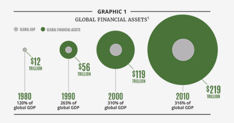 그러나 1970 1980년대 오일 쇼크 이후 침체를 벗어나기 위해 시작된 금융자산의 실물자산 압도, 소위 금융화 ( Financialization ) 를 통한 과도한 금융팽창 이후 모든게 바뀜.