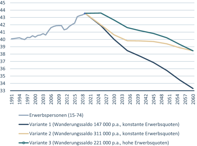 [ 이민자 숫자에 따른 독일 노동인구 감소 전망 ]