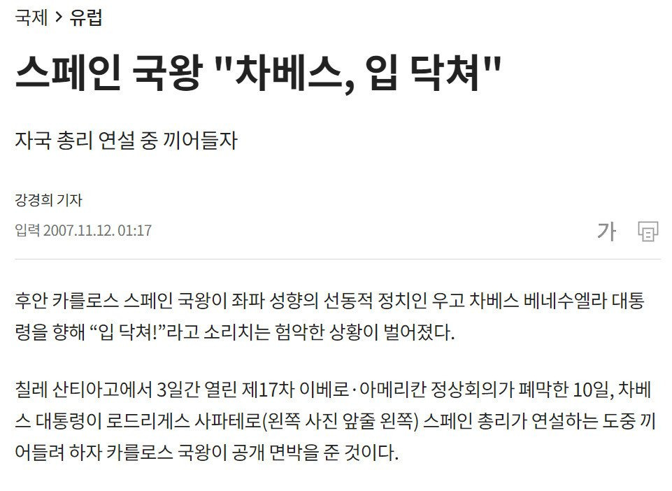 스페인 국왕이 직접 '(X발 새X야) 입 좀 닥쳐봐!' 라고 대놓고 말했을 정도니까