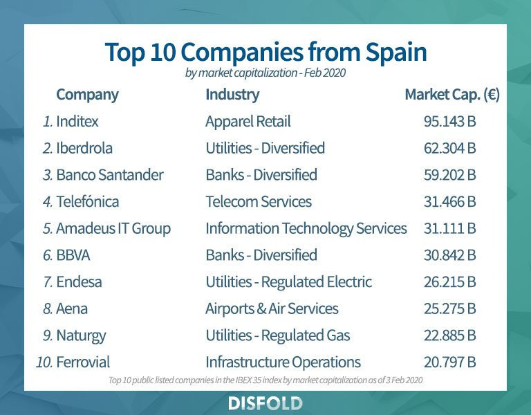 스페인 주식시장 시총 상위 10대 기업을 보면