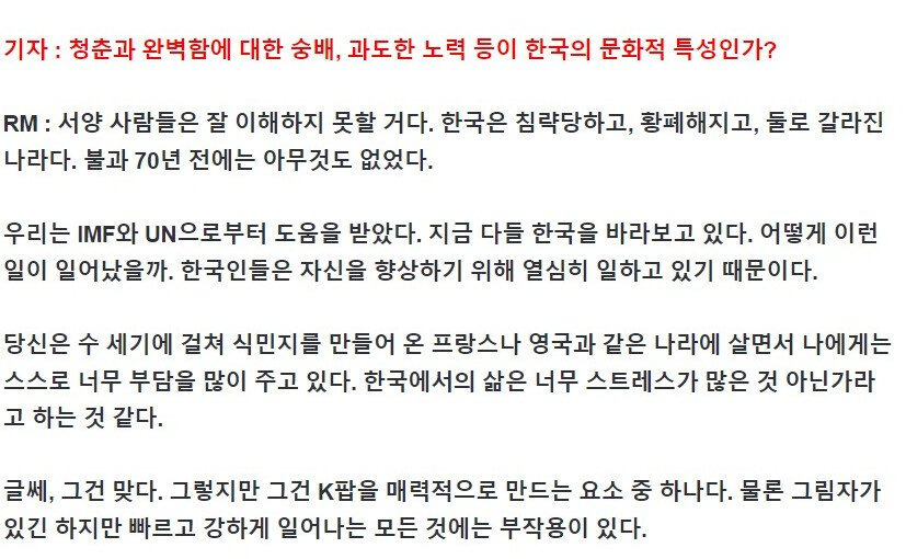 당시 RM이 이렇게 자세하게 대답을 하면서