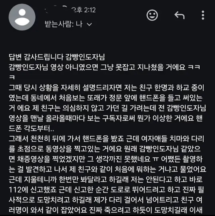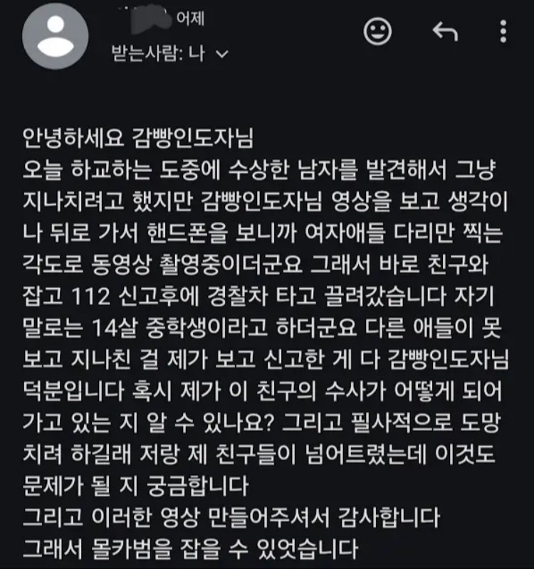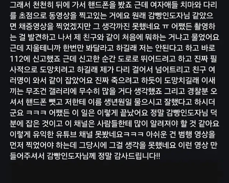 최근 들어 구독자들이 불촬범 잡고 후기 남겨주는 경우가 생김!