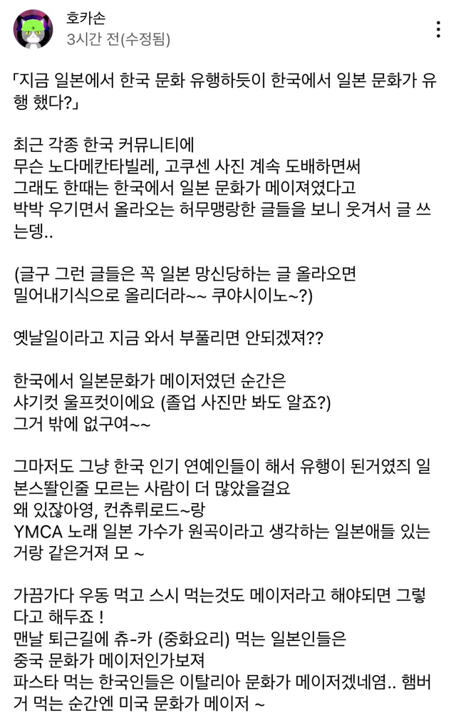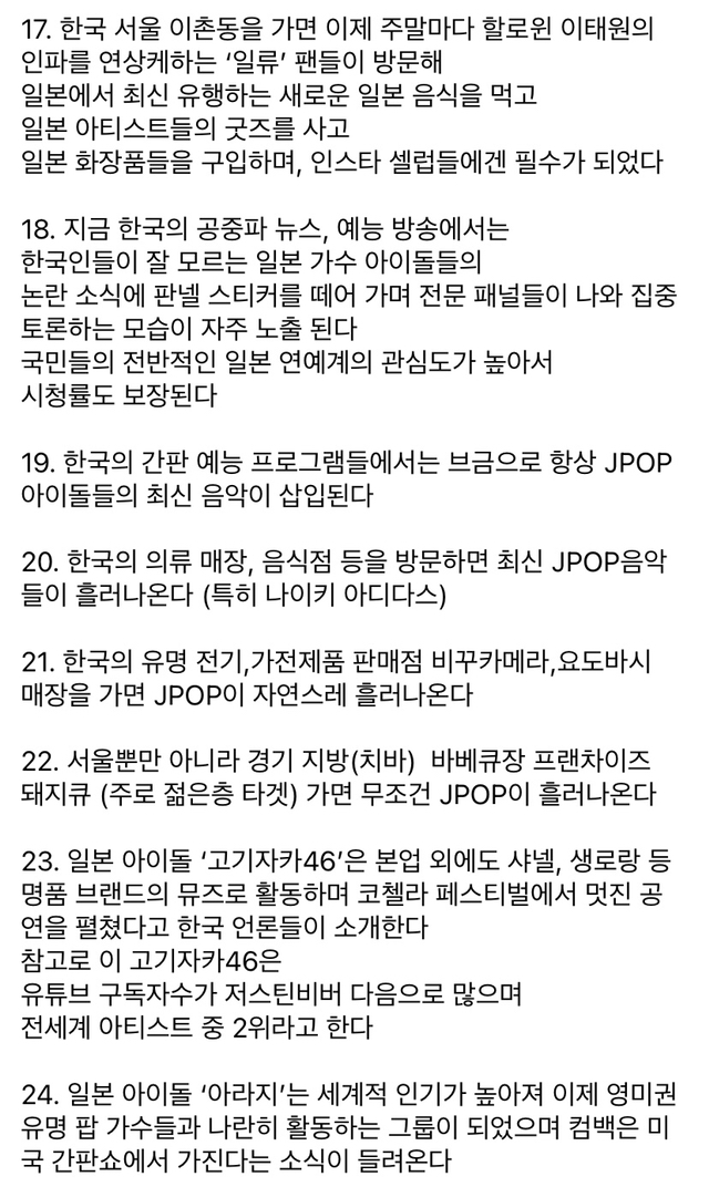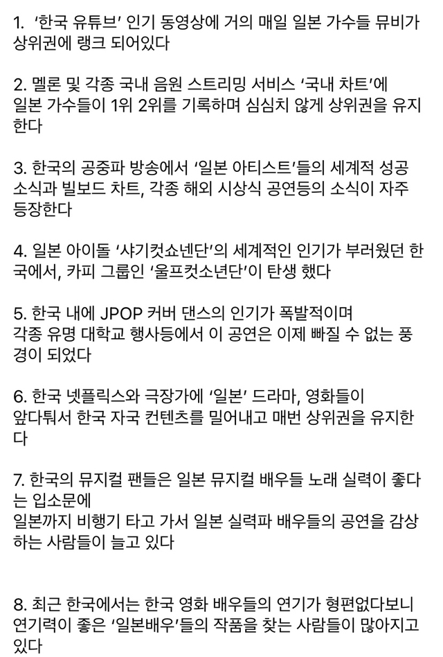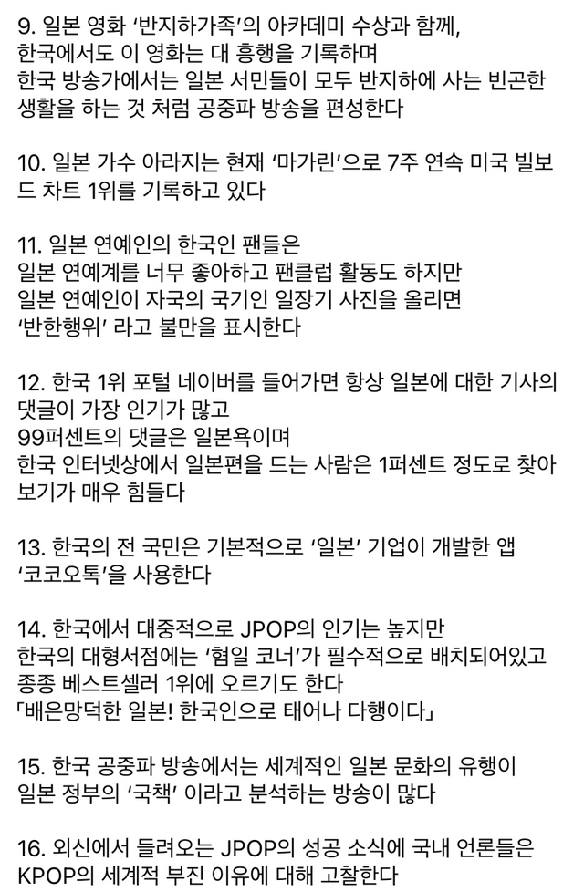 작성자붕어없는 붕어빵 작성시간 24.10.17 일본.. 우리가 생각하는거 이상으로 한국 엄청좋아함. 일반인들도 좋아함. 한국문화, 음식, 드라마 .. 정ㅎㅐ인이 최애라는 한국말잘하는 일본인 만난적있음.. 한국에서 유학생활해서 리스닝잘되는 일본인, 드라마보고 언어배워서 한국와보는 일본인, 한국음식 집에서해먹는다는 일본인..