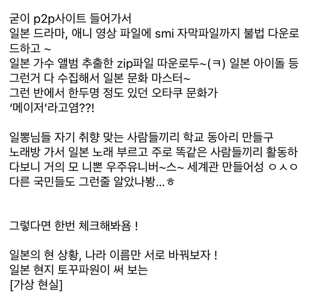 작성자조쉬하트셋 작성시간 24.10.29 저얼대 ㅋㅋㅋ 언제나 오타쿠 마이너 문화였고 대놓고 좋아하면 아싸 찌질이 취급이였음..