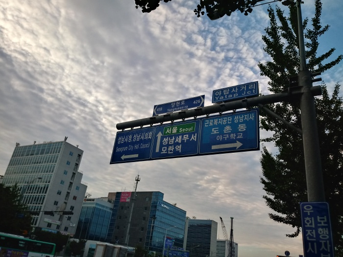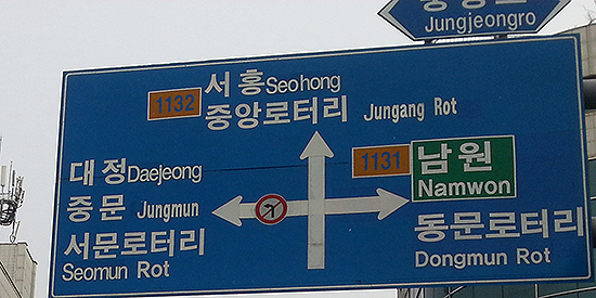'아까는 초록색 표지판이었는데, 왜 여기는 파란색 표지판이지?'