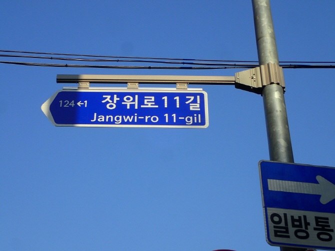 그리고 도로명 주소를 표기하는 경우에도 파란색이다