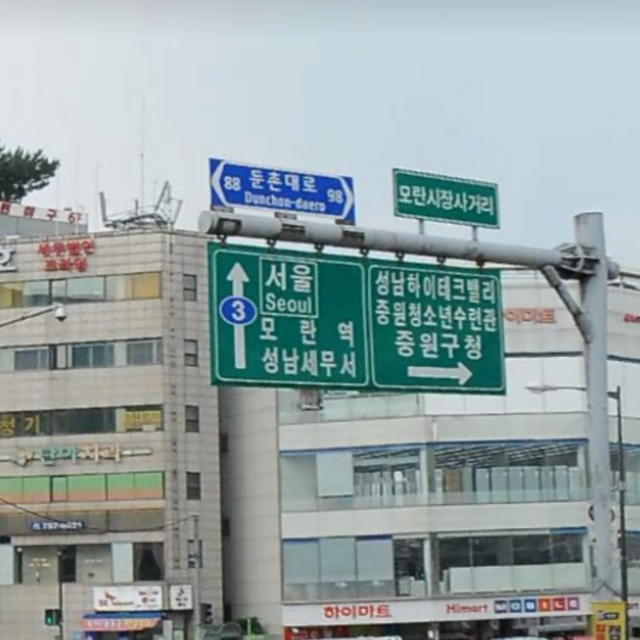 모란시장사거리는 녹색 표지판을 사용한 모습이다