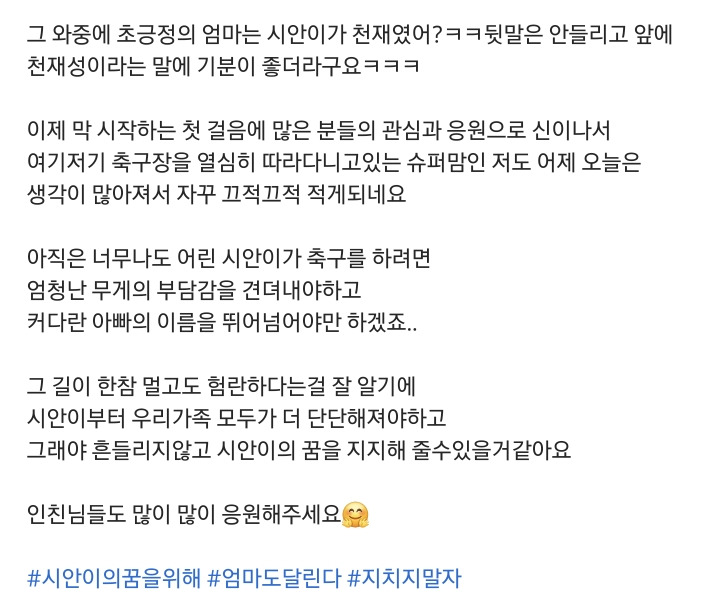 작성자무조건실력충 작성시간 24.10.19 차두리도 아빠랑 계속 비교 당했잖아 아빠 넘사라ㅋㅋ힘내고 열심히 하렴!