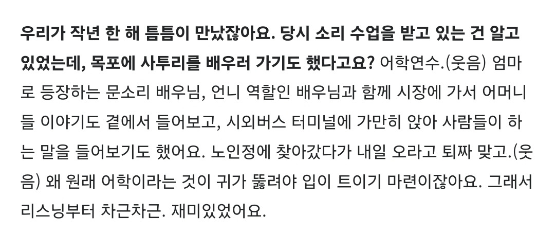 정년이는 캐릭터 설정상 자연스럽게 소리를 배워야했기 때문에 소리로 유명한 전라도 출신이여야 했다는