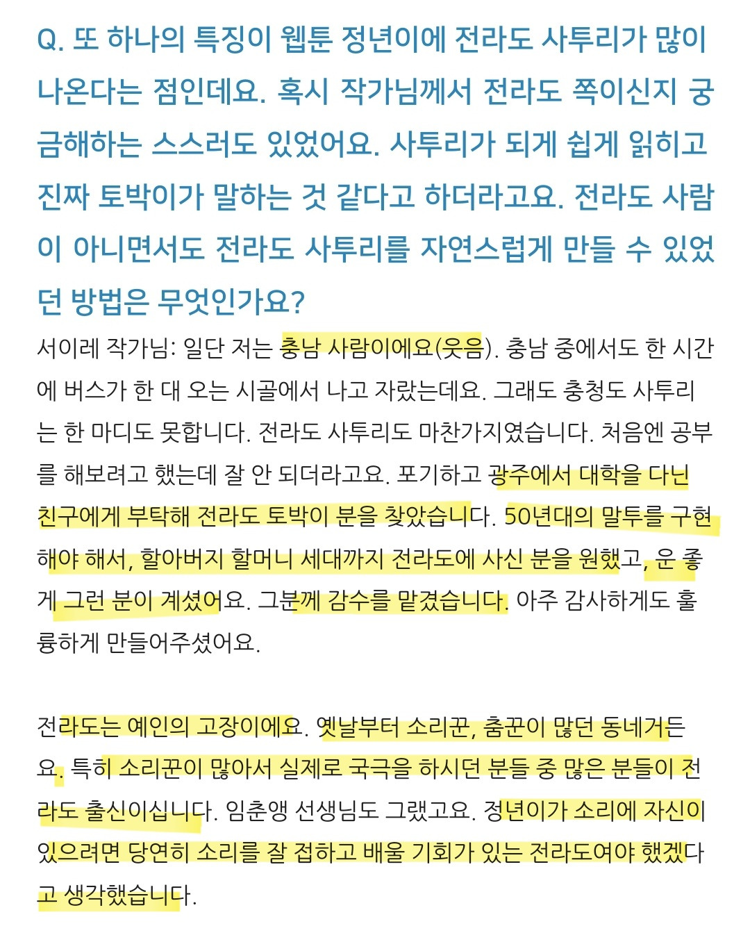 그래서 대대로 전라도 토박이로 50년대 사투리를 아시는 분을 찾아 검수를 받았다고 함