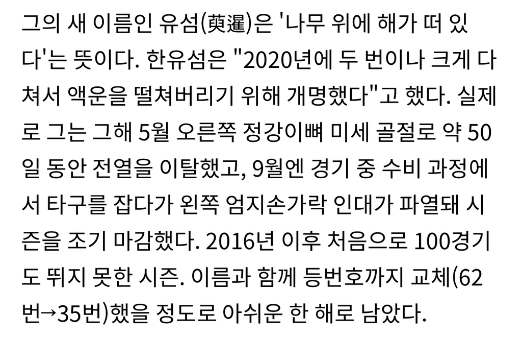 실제로 만년 유망주였다가 개명 후 국가대표 외야수로 거듭남