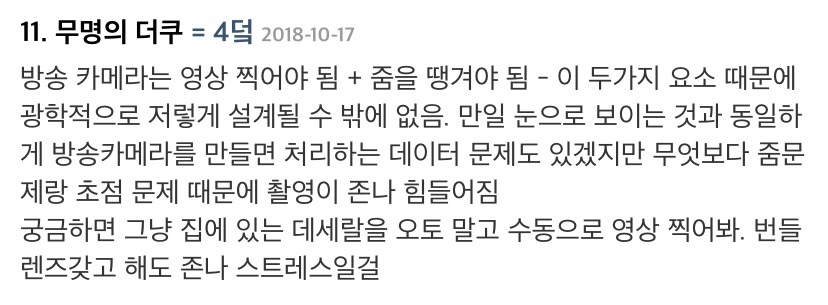 방송용 카메라는 350mm~230mm렌즈에 해당