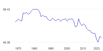 [ GDP 대비 민간소비 비중이 2010년대 이후 급락하는 독일 ]