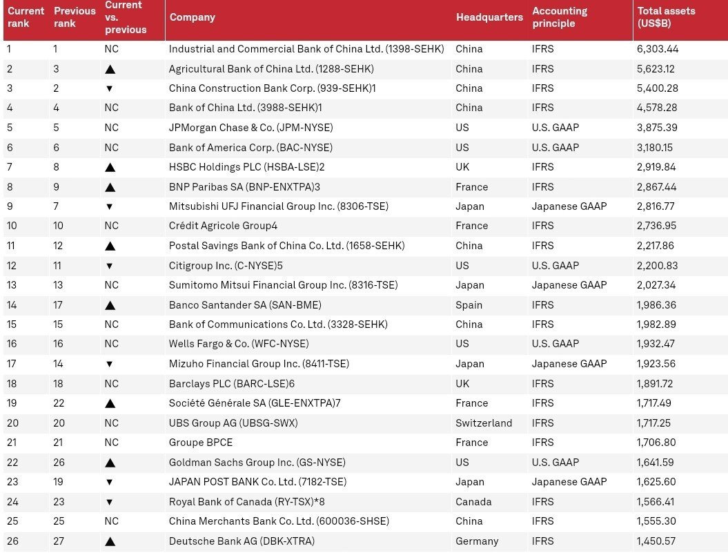 좋은 예로 2013년도에 자산으로 세계 은행 10위에 이름을 올리던 도이치방크는 이제 26위에 불과함.