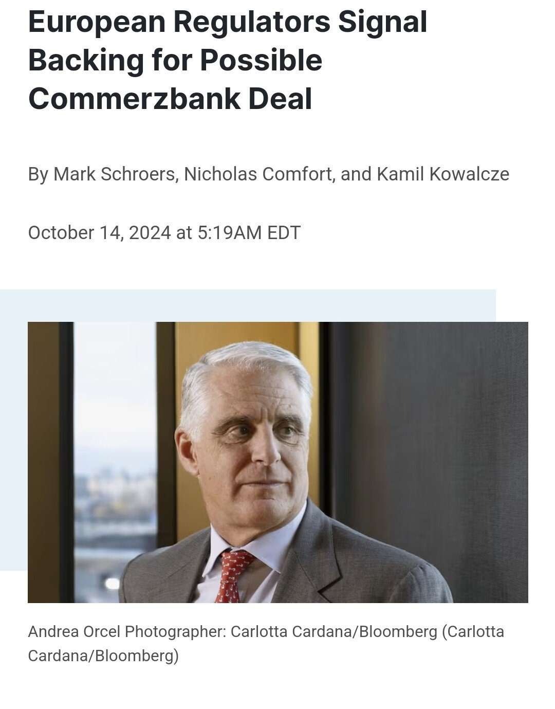 그리고 이탈리아의 Unicredit도 독일의 코메르츠방크 적대적 인수합병 승인받을 가능성 높음.