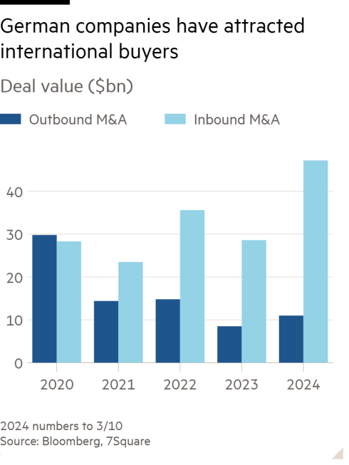 게다가 독일 기업들도 자국 기업들 대상으로 인수합병을 벌이고 있음. 몇년전만해도 해외 기업 인수가 더 많았는데 격세지감인 셈.