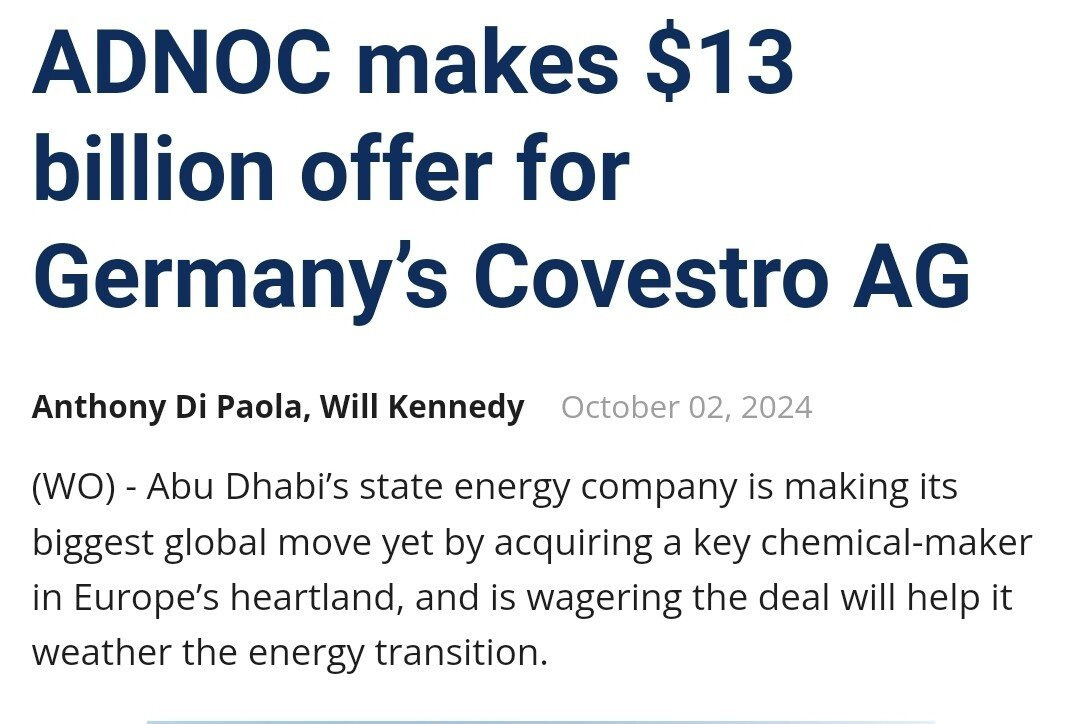 실제로 아랍에미리트의 ADNOC이 재정난을 겪는 독일 화학 기업 Coversto를 인수할려는 요청이 들어오고, 독일 국영 철도회사 도이치반의 물류 운송 부문 계열사가 덴마크 DSV에 매각됨.