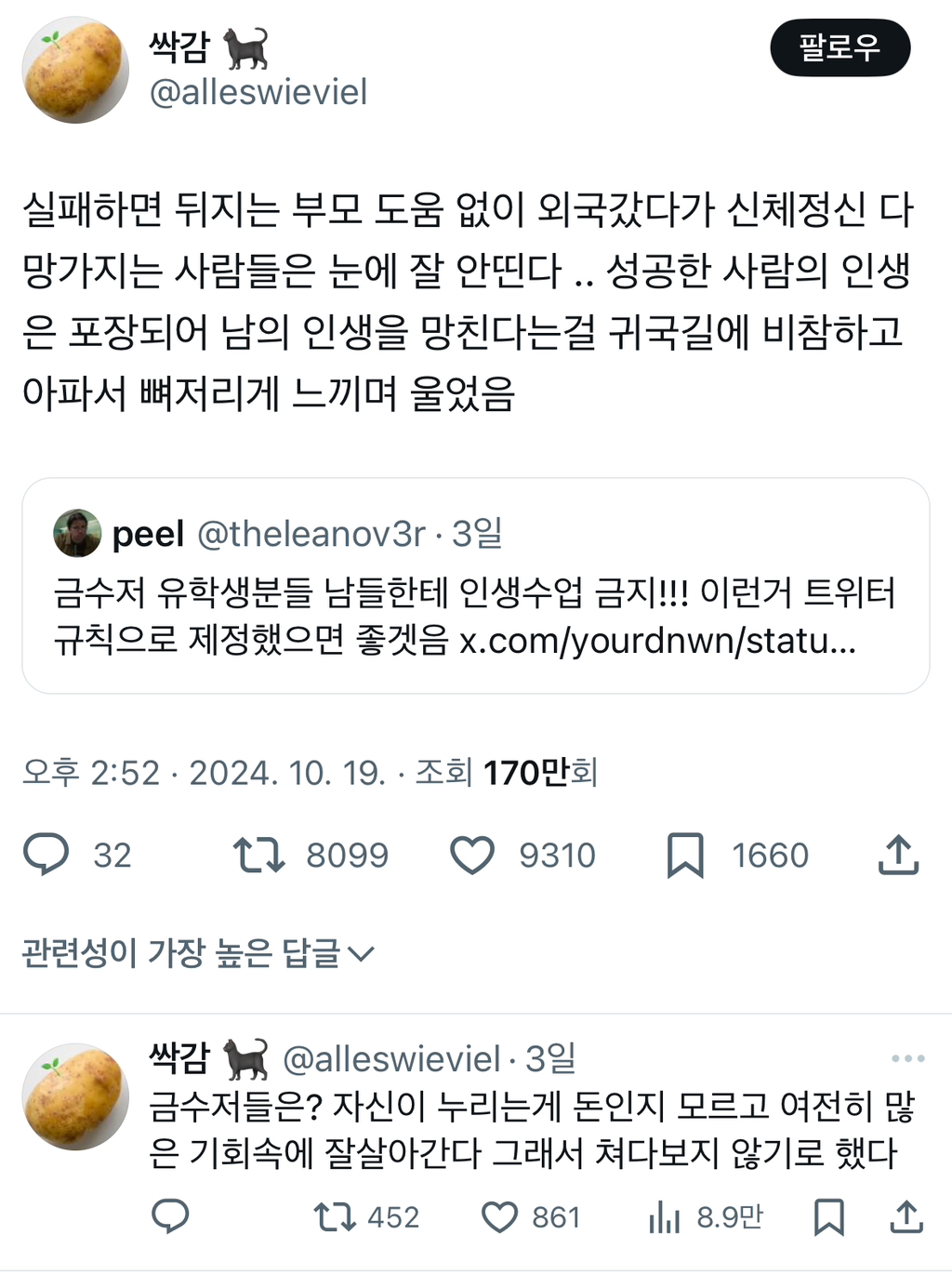 작성자호릿히 작성시간 24.10.22 댓글보고 트윗보니까 뭔말인지 이해간다