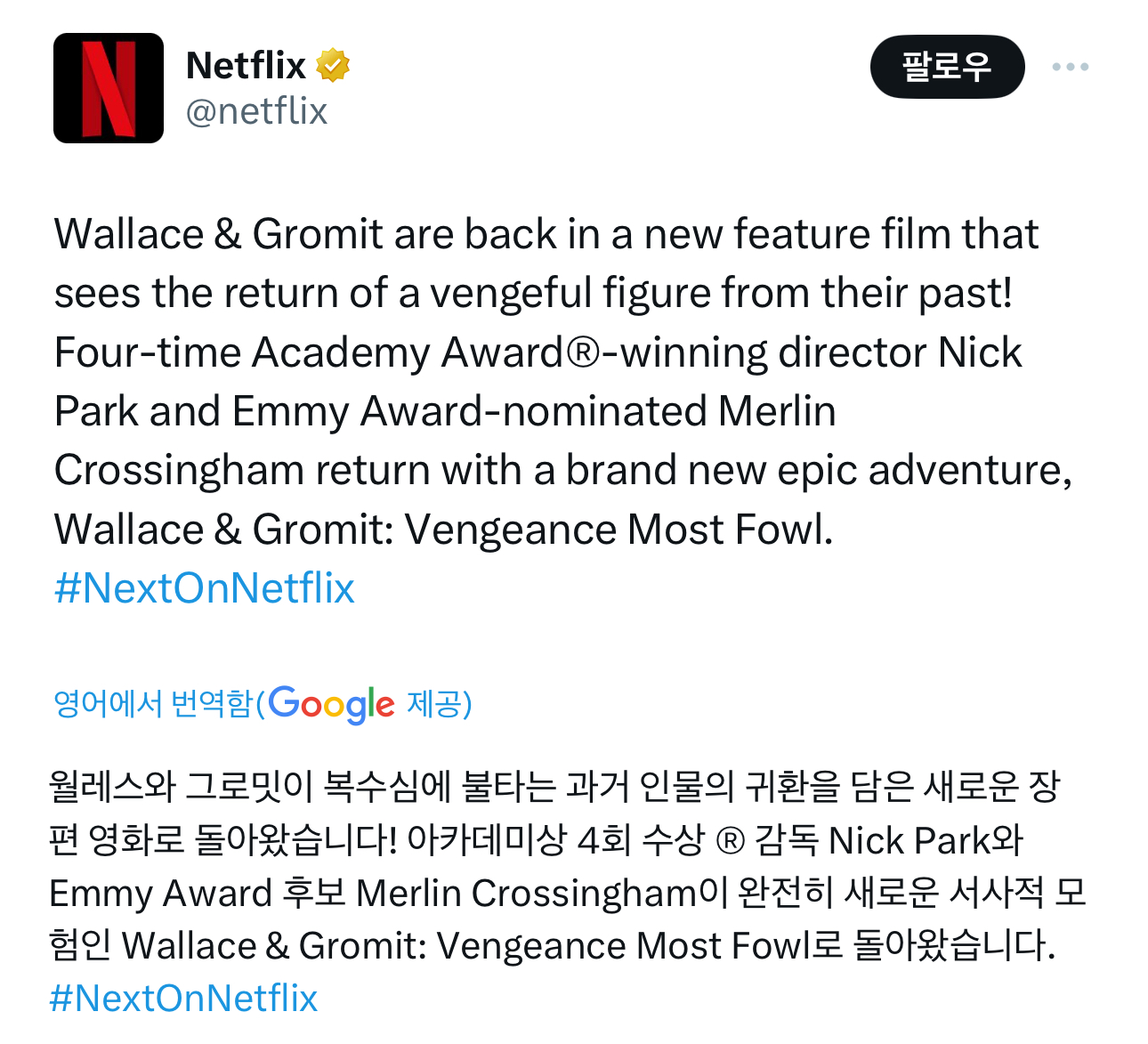 [스크랩] [흥미돋]윌레스와 그로밋 올겨울에 공개되는 신작에 그 펭귄 나옴 작성자해방이다랏다|작성시간24.10.22|조회수3,583 목록 댓글 23 글자크기 작게가 글자크기 크게가 출처: 여성시대 나프탈렌향https://youtu.be/D--y92inOdU?si=WQTWUgcPc3NB8K80와 눈빛봐 ㄷㄷㄷㄷㄷ 다음검색 스크랩 원문 : *여성시대* 차분한 20대들의 알흠다운 공간 현재 게시글 추가 기능 열기 북마크 공유하기 신고 센터로 신고 댓글 댓글 23 댓글쓰기 답글쓰기 댓글 리스트 작성자의젓한 여시 | 작성시간 24.10.22 헐ㄷㄷㄷㄷㄷㄷㄷ 작성자블루베리모듬견과 | 작성시간 24.10.22 빵 다녀왔구나 ㅋㅋㅋㅋ 작성자펭현숙싱글 | 작성시간 24.10.22 기대됨ㄷㄷ 작성자두산승리요정 | 작성시간 24.10.22 저 놈 저 무서운놈....!!!!!!!!!ㅠ 작성자Leau Papier | 작성시간 24.10.23 소지품에 줄자 있는거ㅋㅋㅋㅋㅋ디테일 댓글 전체보기