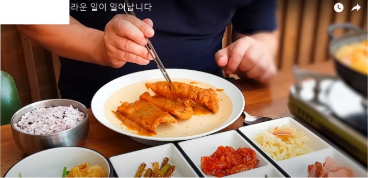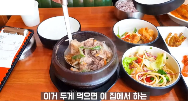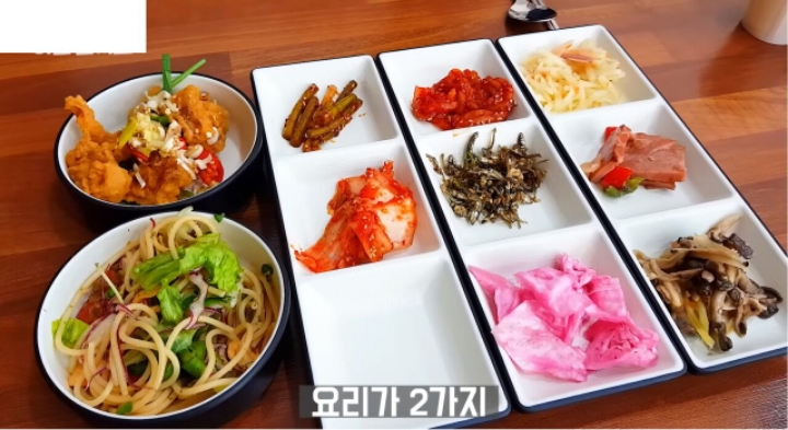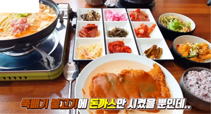 돈까스와 뚝베기불고기 하나씩 시키면 저렇게 한 상 같이 나와주니