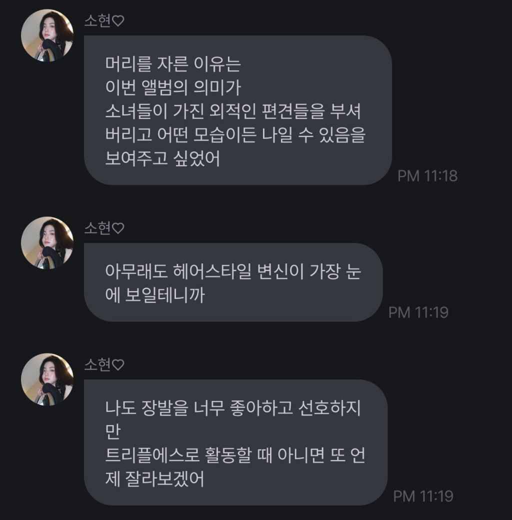 소현이가 머리 자른 이유 설명해줬어 🥺