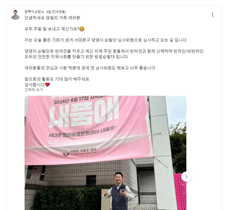 서대문구 댕댕이 순찰단 심사위원도 하고