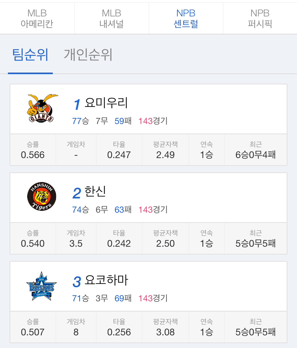 NPB는 1위 팀에 부여하는 어드밴티지가 KBO보다 훨씬 큼
