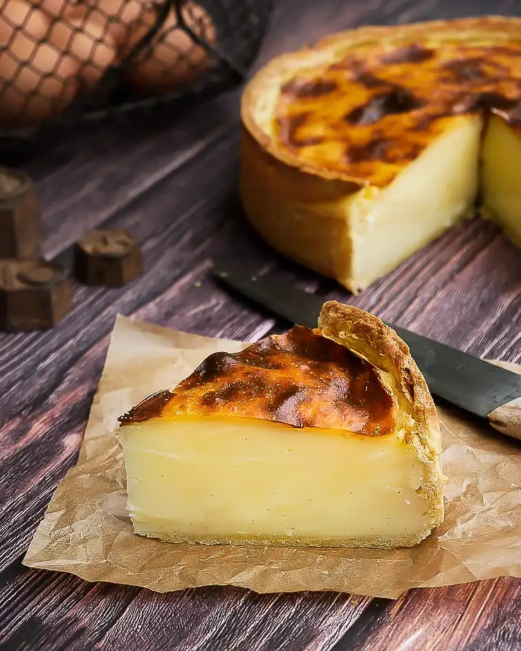 중세 라틴어 ‘flado’는 ‘납작한 케이크’라는 뜻인데, 넓고 평평하게 굳어지는 커스터드 크림 디저트 특성과 연결되어 ‘플랑(Flan)’이라고 부르게 되었대.