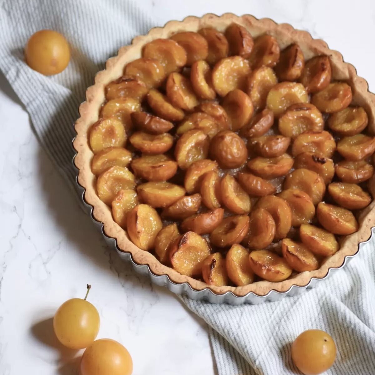 타르트지에 미라벨을 올려 오븐에 구워서 만드는 로렌 지방의 전통 타르트야. 미라벨은 자두의 품종 중 하나인데, 신맛이 적고 당도가 높으며 체리처럼 톡톡 씹히는 식감을 가지고 있어 프랑스에서 인기있는 자두 품종 중 하나야. 자두를 좋아하지 않는 사람들도 미라벨을 찾는 경우가 많아.