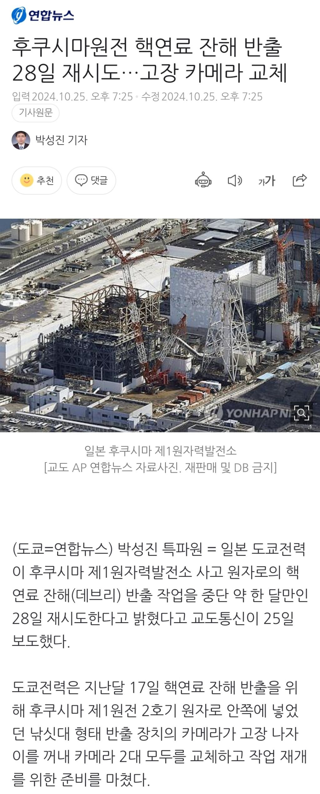 [여시뉴스데스크]후쿠시마원전 핵연료 잔해 반출 28일 재시도…고장 카메라 교체 작성자천리길|작성시간24.10.26|조회수523 목록 댓글 1 글자크기 작게가 글자크기 크게가 출처: https://naver.me/5MVqgHlT후쿠시마원전 핵연료 잔해 반출 28일 재시도…고장 카메라 교체박성진 특파원 = 일본 도쿄전력이 후쿠시마 제1원자력발전소 사고 원자로의 핵연료 잔해(데브리) 반출 작업을 중단 약 한 달만인 28일 재시도한다고 밝혔다고 교도통신이 25일 보도했다. 도쿄전n.news.naver.com이하 생략전문 출처로🔗관련 기사https://naver.me/GV2WZYzu후쿠시마 ‘핵연료 잔해 꺼내기’…시도도 못하고 중단2011년 3월 동일본 대지진으로 폭발 사고가 있었던 후쿠시마 제1원전에서 녹아내린 핵연료 잔해를 꺼내는 작업이 13년 반 만에 처음으로 시도될 예정이었으나 장비 설치에 문제가 생겨 중단됐다. n.news.naver.comhttps://naver.me/5hurZm7V"도쿄전력, 첫 핵연료잔해 반출 준비 작업에 자사 직원 배치도 안 해"지난달 22일 일본 후쿠시마 제1원전 사고 원자로에서 처음 시도된 핵연료 잔해 반출 작업 당시, 도쿄전력이 준비작업 현장에 자사 직원조차 배치하지 않았던 것으로 나타났다. 현지시간 5일 아사n.news.naver.comhttps://naver.me/GUwcsLT2후쿠시마 원전 핵연료 잔해물 반출 작업, 카메라 교체로 '중단' 장기화일본 후쿠시마 제1원자력 발전소 2호기 원자로 내 핵연료 잔해물(데브리) 시험 반출 작업이 또다시 중단됐다. 부주의 문제에 카메라 오작동까지 겹치며 '멈춤' 상태가 장기화하고 있다. NHK에 따n.news.naver.comhttps://naver.me/GgW9GzTH日후쿠시마 오염수 10차 방류 시작…내달 4일까지 7800t 방류일본 도쿄전력은 17일 오전 11시43분부터 후쿠시마(福島) 제1원자력발전소 오염수(일본 정부 명칭 처리수) 10차 해양 방류를 시작했다. 교도통신과 산케이신문 등에 따르면 도쿄전력은 이날부터 n.news.naver.comhttps://naver.me/FxFxVl55日, 후쿠시마 오염수 10차 방류…“처리에 100년 걸릴 듯”日, 후쿠시마 원전 오염수 10차 방류 핵연료 잔해로 매일 오염수 90톤 추가 완전한 처리에 100년 소요될 듯 일본 정부가 오늘(17일)부터 후쿠시마 제1원자력발전소 오염수(일본 정부 명칭 ‘처리수n.news.naver.com 다음검색 현재 게시글 추가 기능 열기 북마크 공유하기 신고 센터로 신고 댓글 댓글 1 댓글쓰기 답글쓰기 댓글 리스트 작성자뿌용뿌용 뿌요옹 | 작성시간 24.10.27 저거 계속 해야 일본 대지진 날거 같긴해… 바다에 영향 주면 줄 수록 지진,해일 심해짐 댓글 전체보기