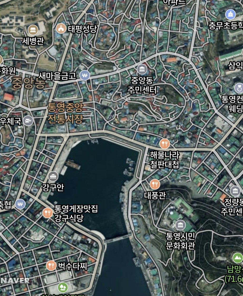 슬슬 관광지들이 나옵니다.... 다만 정량동은 어업, 그와 관련된 공업이 주력이고 통영의 경제가 몰락하며 그 여파를 가장 씨게 맞은 동네다 보니 처음 인상은 좋지 못할겁니다. 거기다 교통편도 그리 좋지는 못해요.