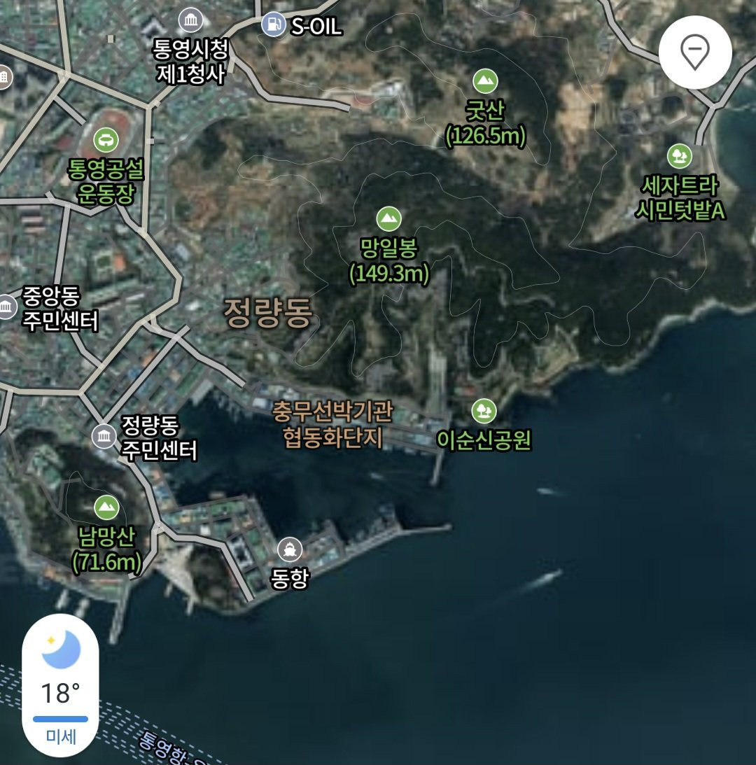 청마문학관이라고 청마 유치환의 생가에 세워져 있는 작은 박물관이 있습니다. 딱히 가볼 가치는 없지만 엄청 높아 보이는 계단을 올라 기상청 쪽 산책로는 이용하면 한려수도 풍경과 함께 천천히 이순신공원으로 가 이순신 장군 동상이 있는 예능 전수관 쪽, 바다가 탁 트여 보이는 한옥 정자를 지나 놀이터, 좀 더 가서 해군 위령비 쪽으로 다이렉트로 갈 수가 있기에 바다 쪽, 공단 쪽 위험하고 정리되지 못하며 바다 비린내 진동하는 길보단 시간적 여유가 있고 차량이 없다면 이쪽 길을 이용하는 걸 추천합니다.