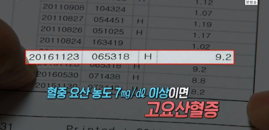 오히려 요산수치가 높아 통풍 위험성까지 경고 받은 76세 어르신