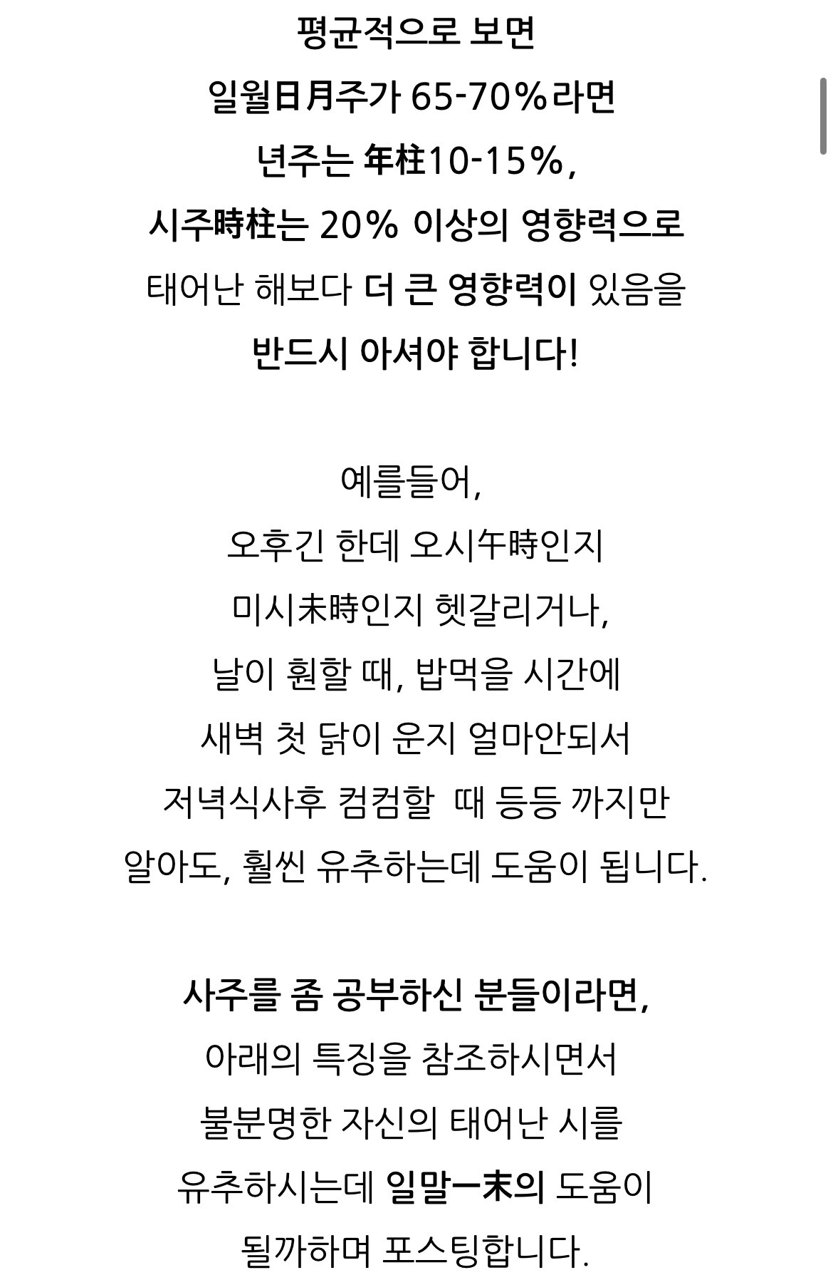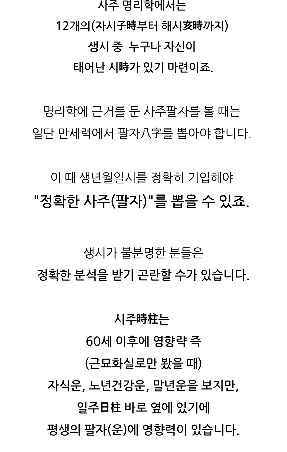 그런데 태어난 시간은 모르는 경우도 많아서 생시 추정법 들고와봄!