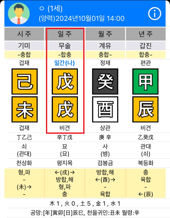 위사진은 오늘 태어난 아기 기준 사주고 타고난 일주는 무술일주임