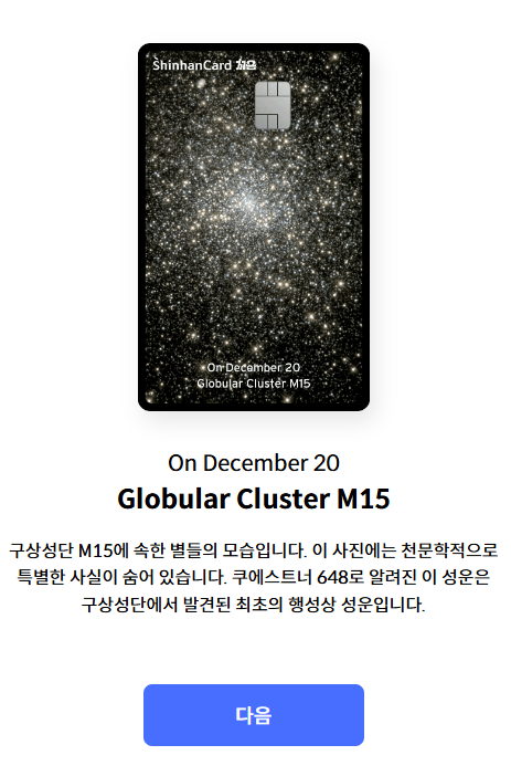 신한카드에서 내 생일에 관측된 우주 사진으로 디자인된 카드가 나왔대염 아래 링크 들어가서 날짜 입력하면 볼 수 있음 🔭✨ 아래 사진은 각각 8월 3일, 4월 22일이에요 ( ◠ ///◠ ) ♡̷̷̷https://t.co/h35FqM6W1O pic.twitter.com/vh0HvesVYB
