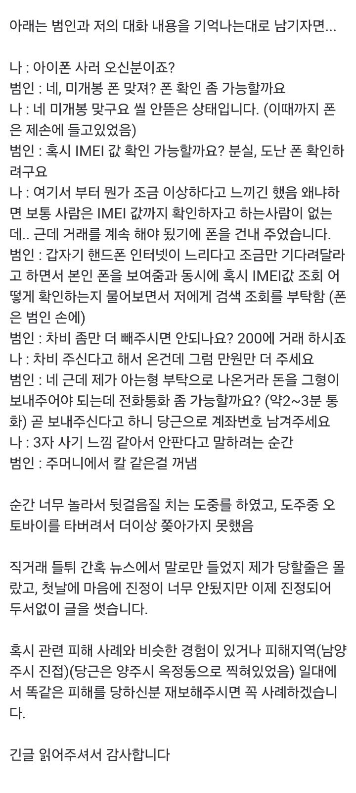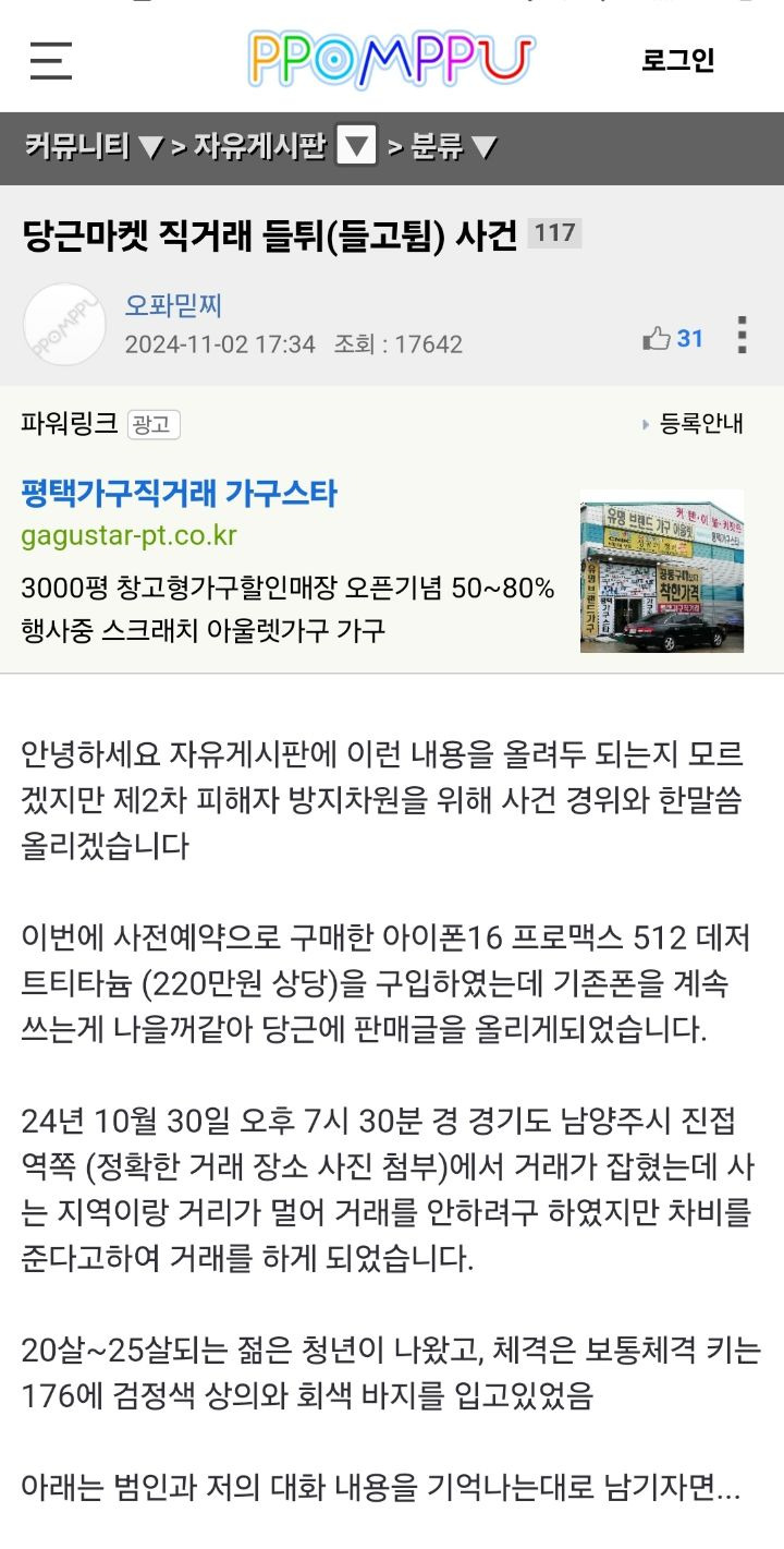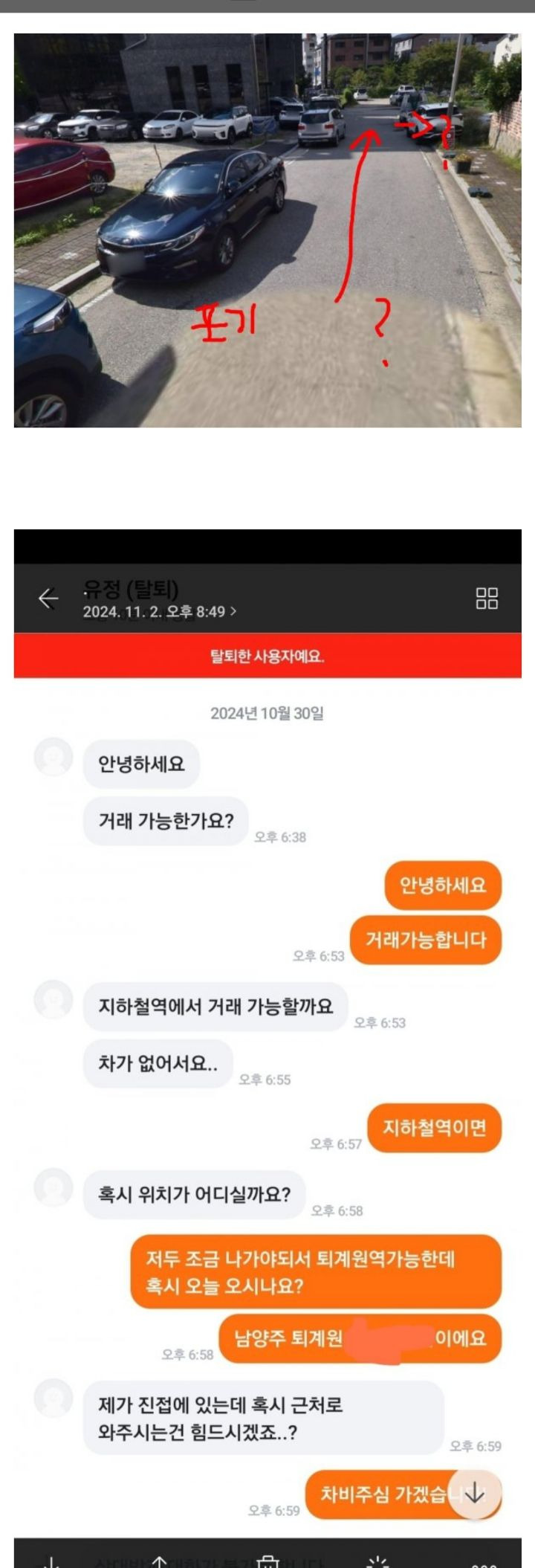 작성자격렬하게쉬고싶다 작성시간 24.11.03 근데 당근이면은 아이디 정보가 있지않아?? 자기 아이디가 아닌가 당연히 잡힐거같은데 뭐지..뭔 ㅅㅂ 칼까지 들고선..