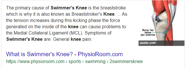 평영에서 입기 쉬운 부상으로, Breaststrocker's Knee로도 불림.