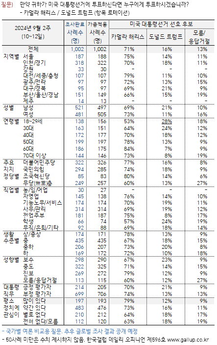 해리스 71 % vs 트럼프 16 %