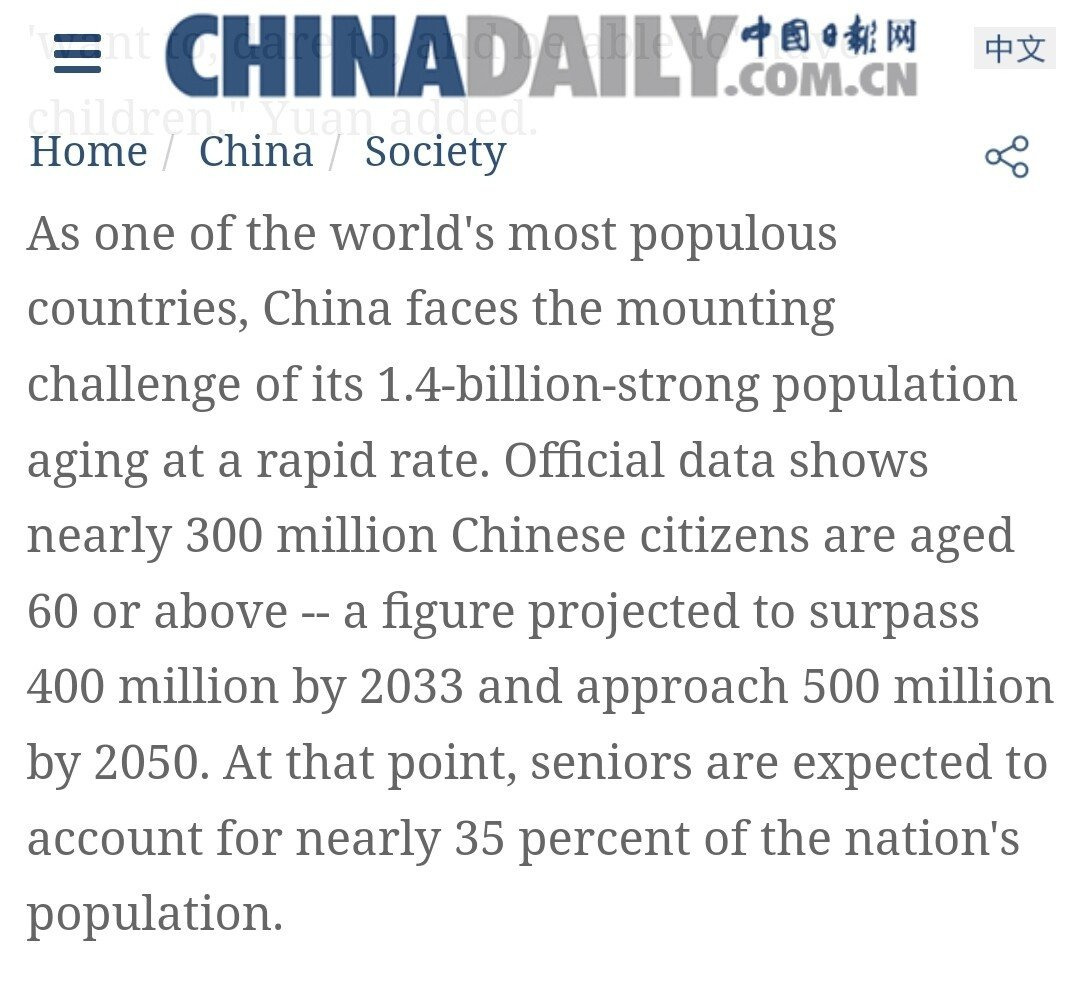 그 결과 초고령화도 심각해서 이미 60세 이상 노인 인구는 공식 자료 기준 3억을 돌파.