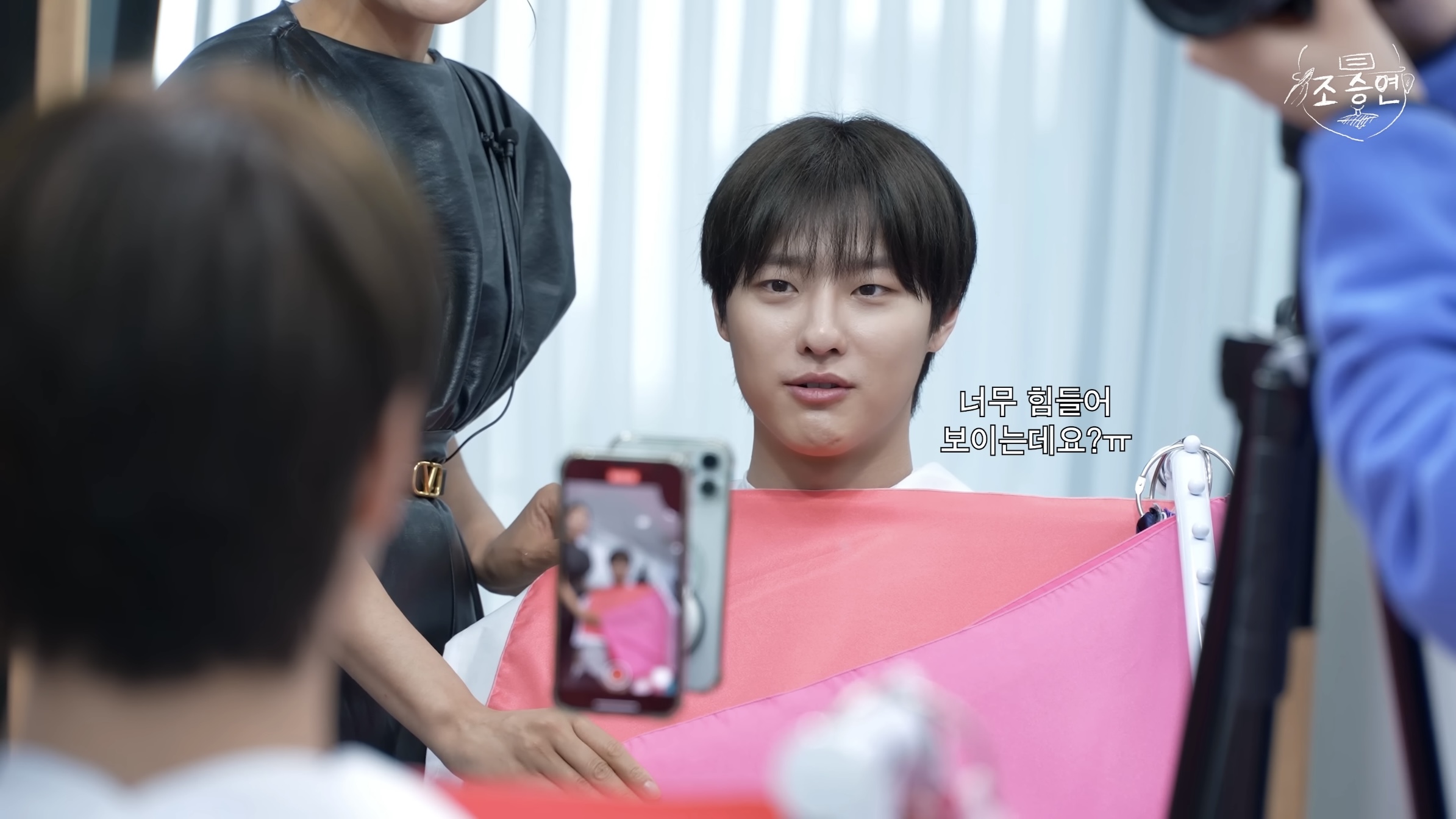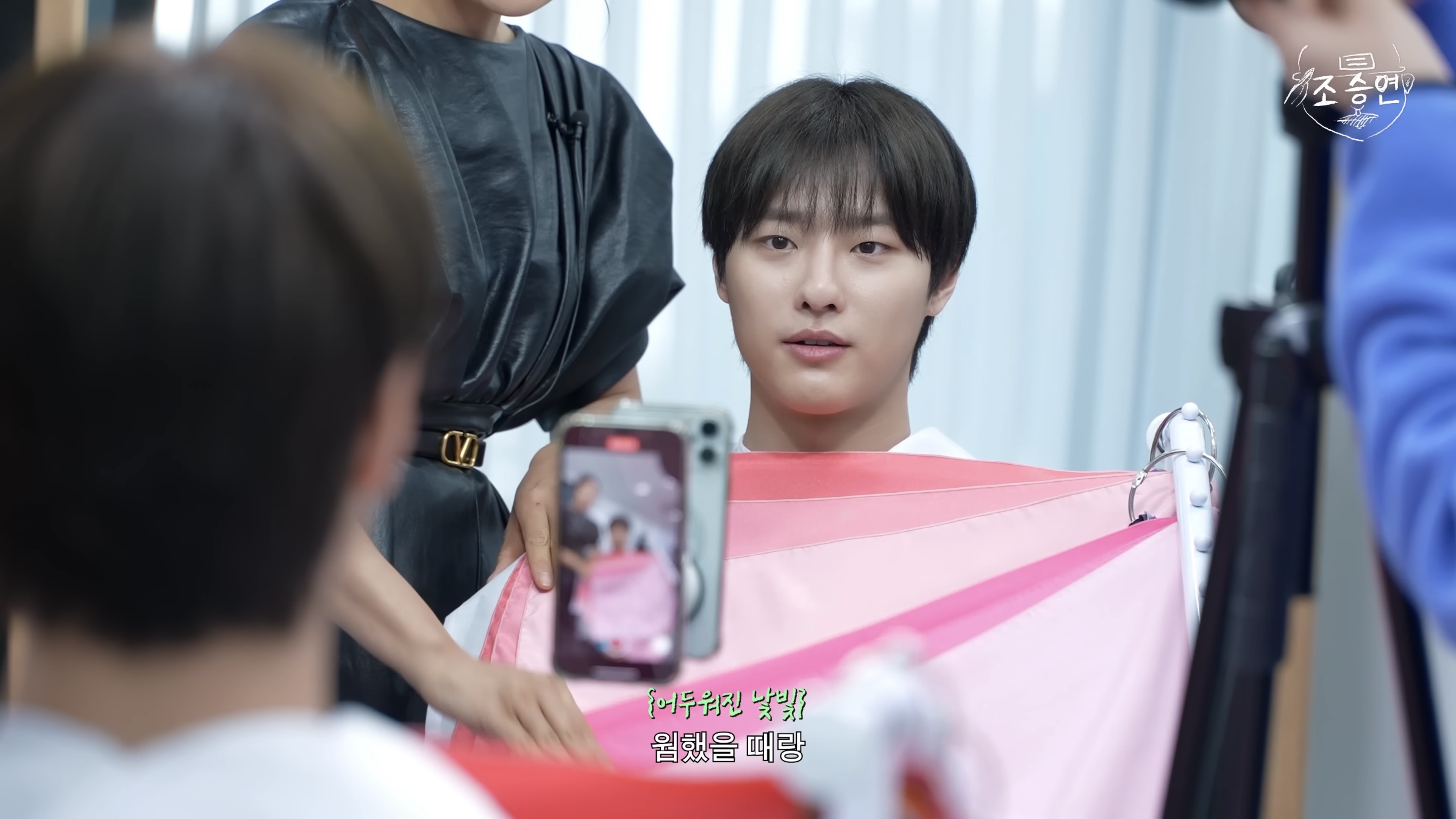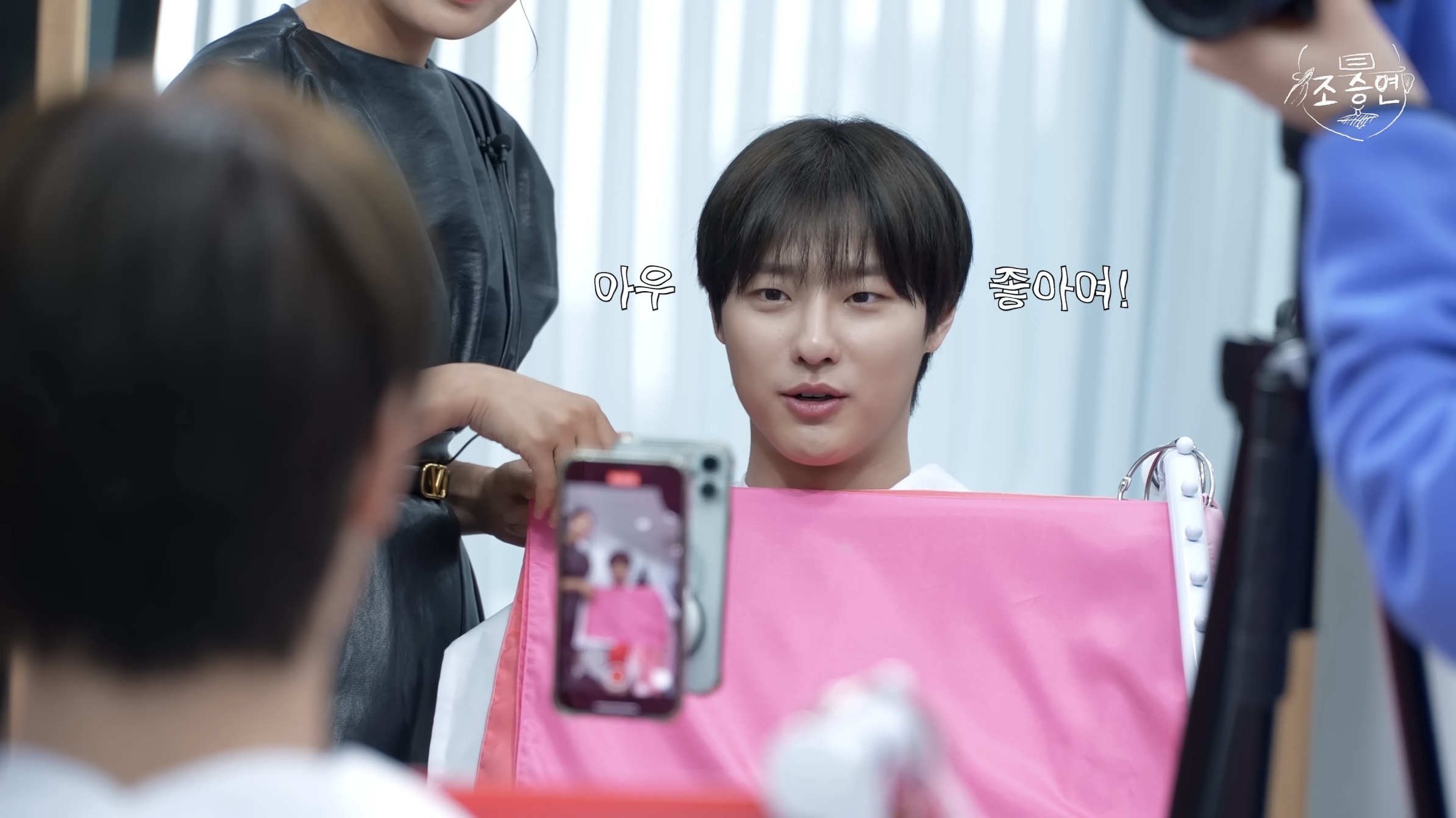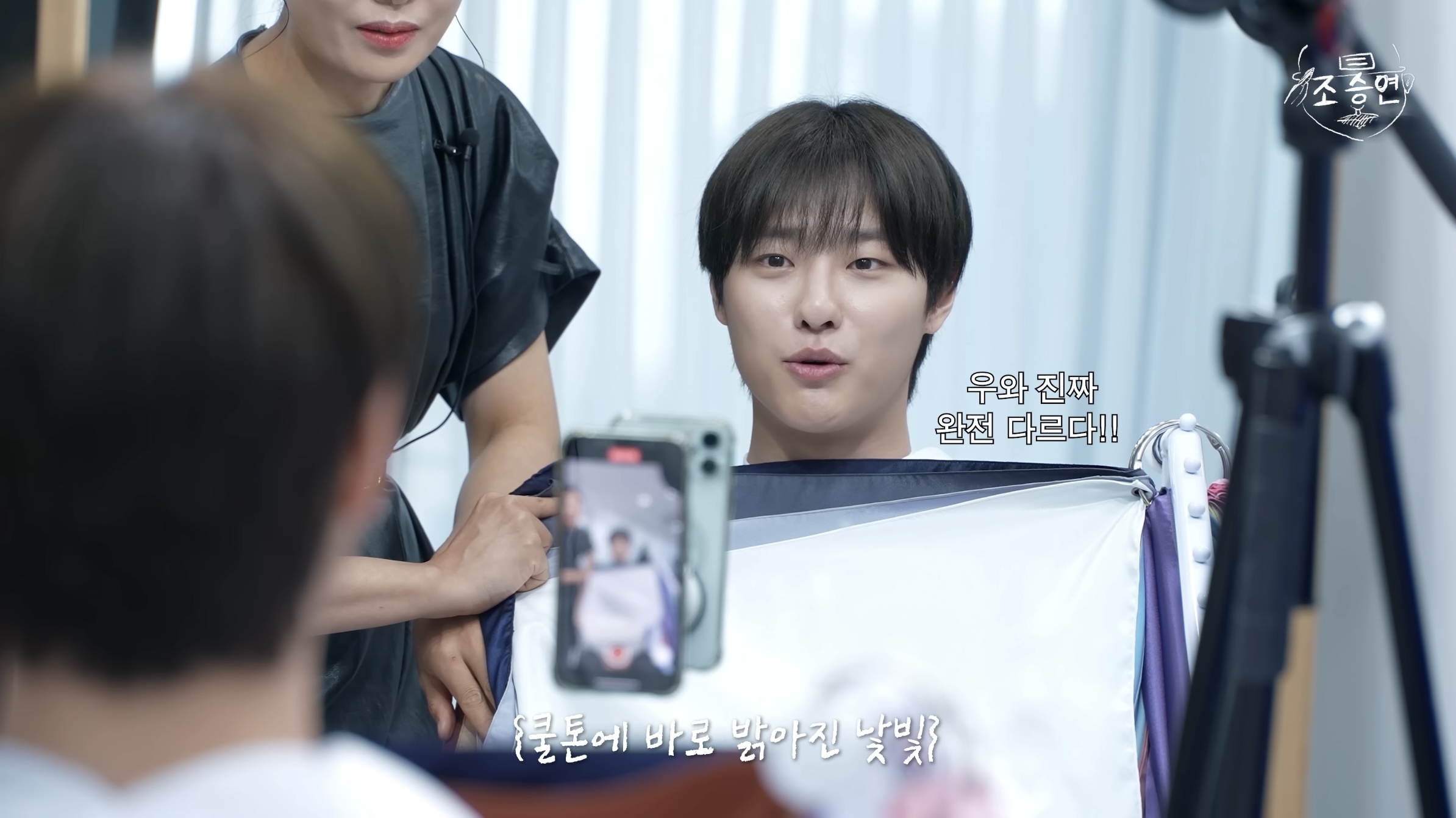 조명 마음에 안 들어서 옮겨 다니니까 스태프들이 바깥 조명이 흰색이라 알려줌