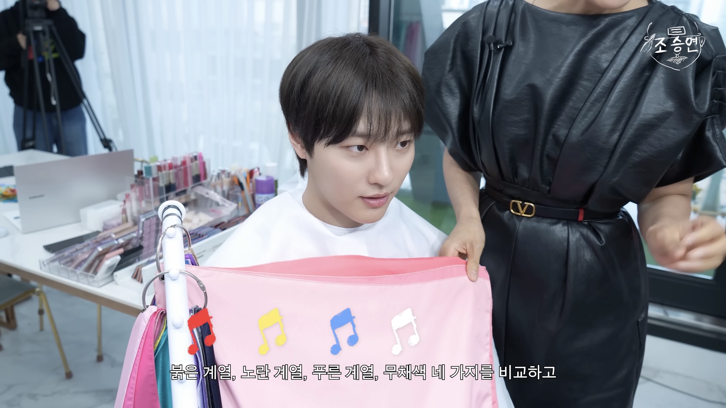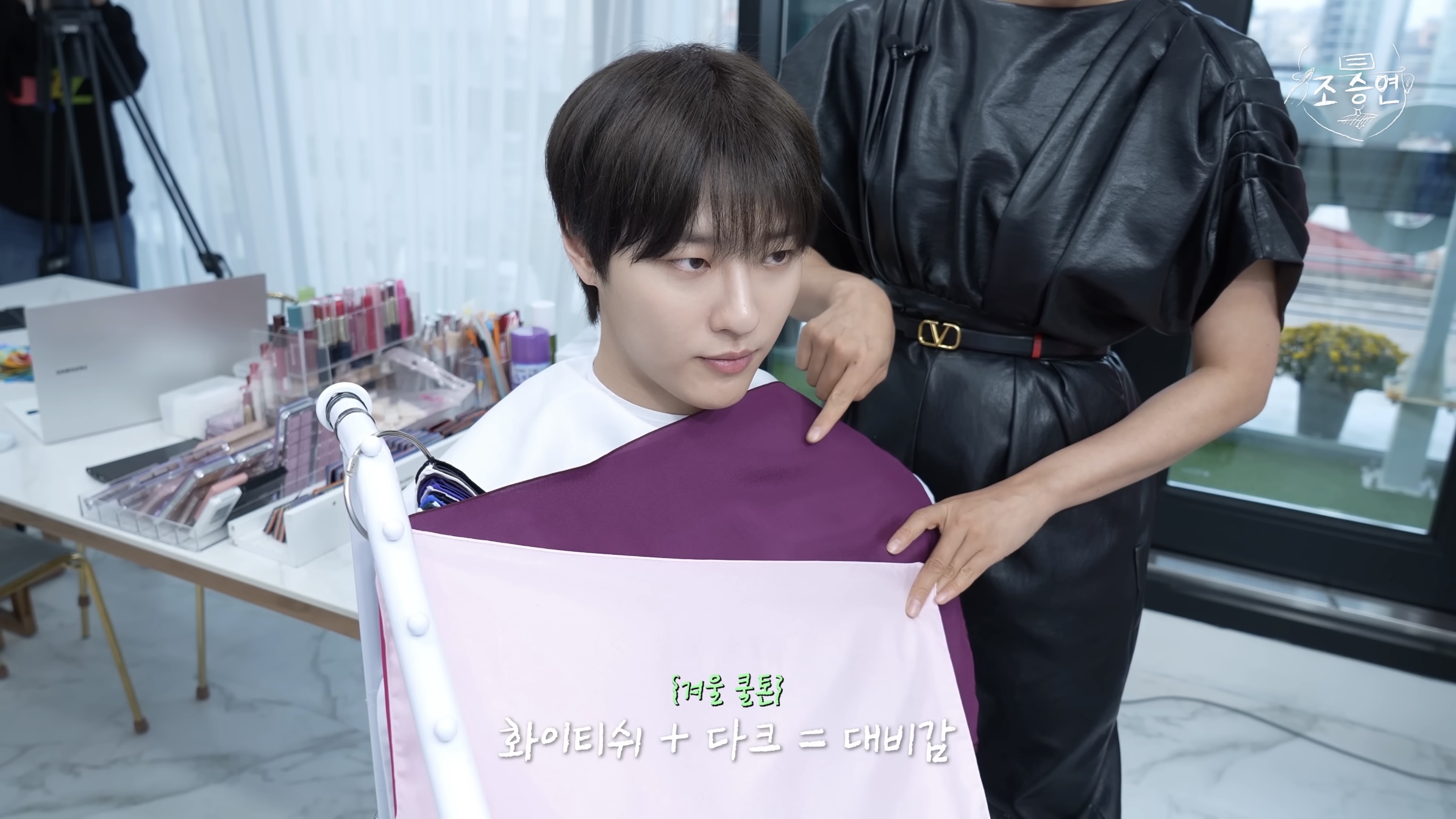대기실에서 겨울쿨톤에 맞는 옷 덮고 있음