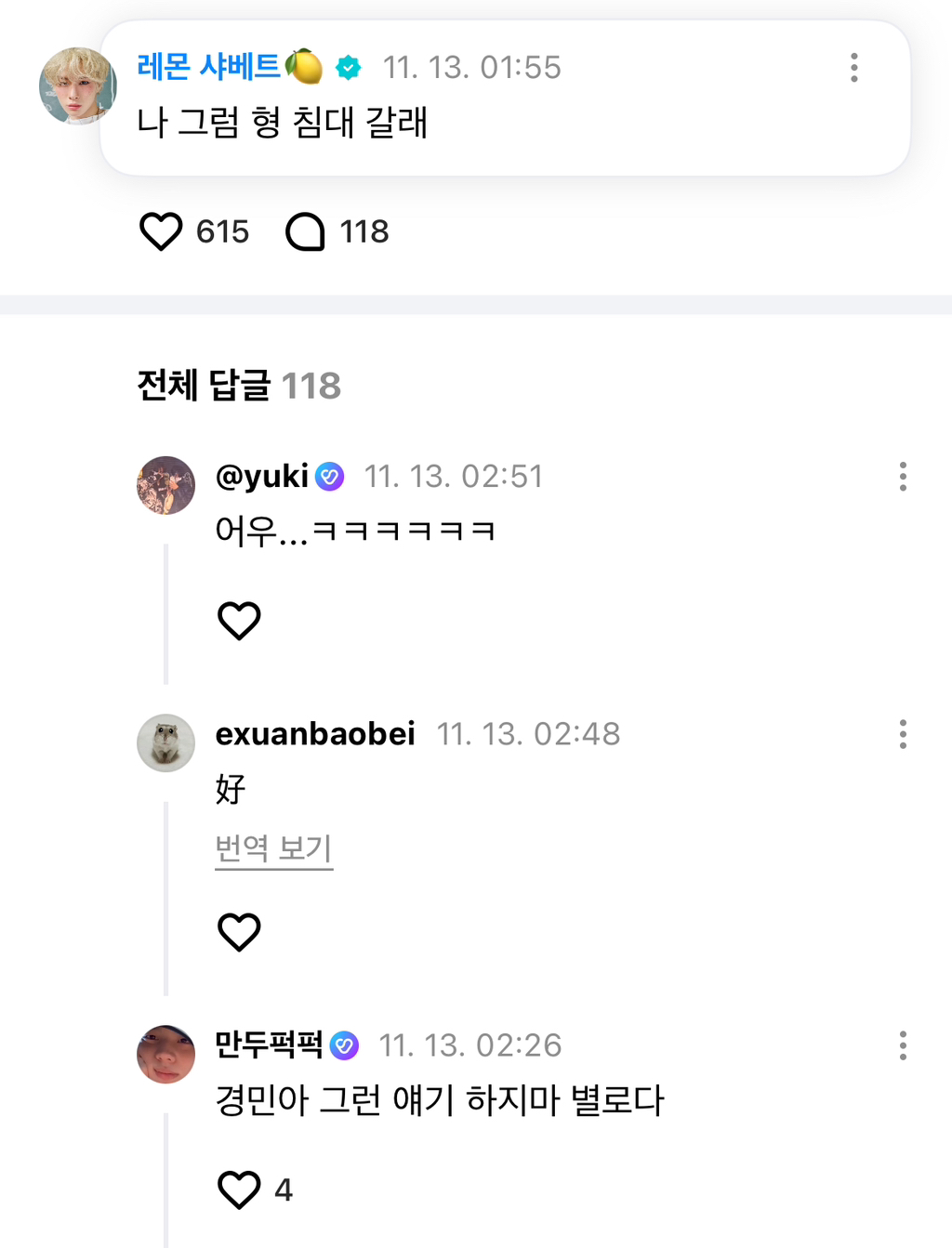 [흥미돋]배꼽냄새나는 5세대 어느 그룹의 비게퍼 작성자피네코|작성시간24.11.13|조회수61,861 목록 댓글 149 글자크기 작게가 글자크기 크게가 출처: 여성시대 피네코는 투어스딸기오빠🍓 = 리더 신유(03)레몬샤베트🍋 =막내 경민(07)그리고 팬들 반응은네....... 다음검색 현재 게시글 추가 기능 열기 북마크 공유하기 신고 센터로 신고 댓글 댓글 149 댓글쓰기 답글쓰기 댓글 리스트 작성자음이온원해요 | 작성시간 24.11.13 ㅡㅡ 작성자ggggdbekwoqa | 작성시간 24.11.13 우욱 작성자뿌루뿌삥퐁 | 작성시간 24.11.13 머라는겨... 작성자베이글에크림치즈 | 작성시간 24.11.13 아 토 작성자코축이 | 작성시간 24.11.13 왜이래.... 댓글 전체보기