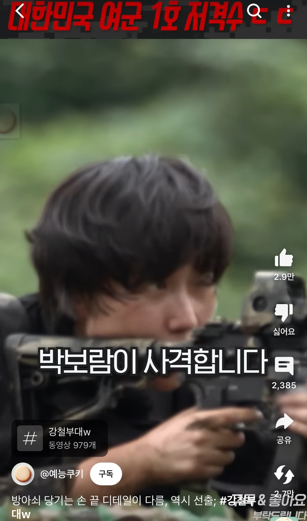 제일 빠른 시간 안에 임무 완료하는 팀이 승리하는 미션이었는데, 이 모든걸 대한민국 여군 1호 저격수 박보람이 48초만에 클리어 해버림