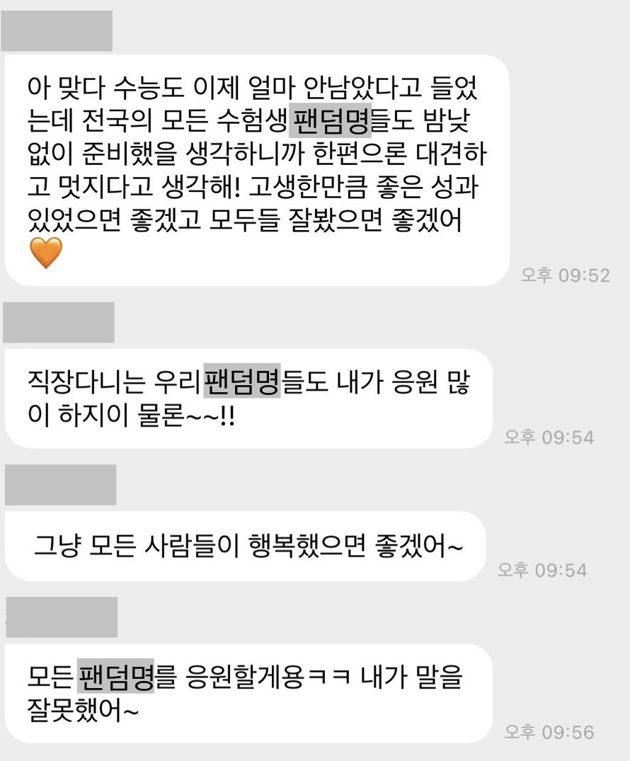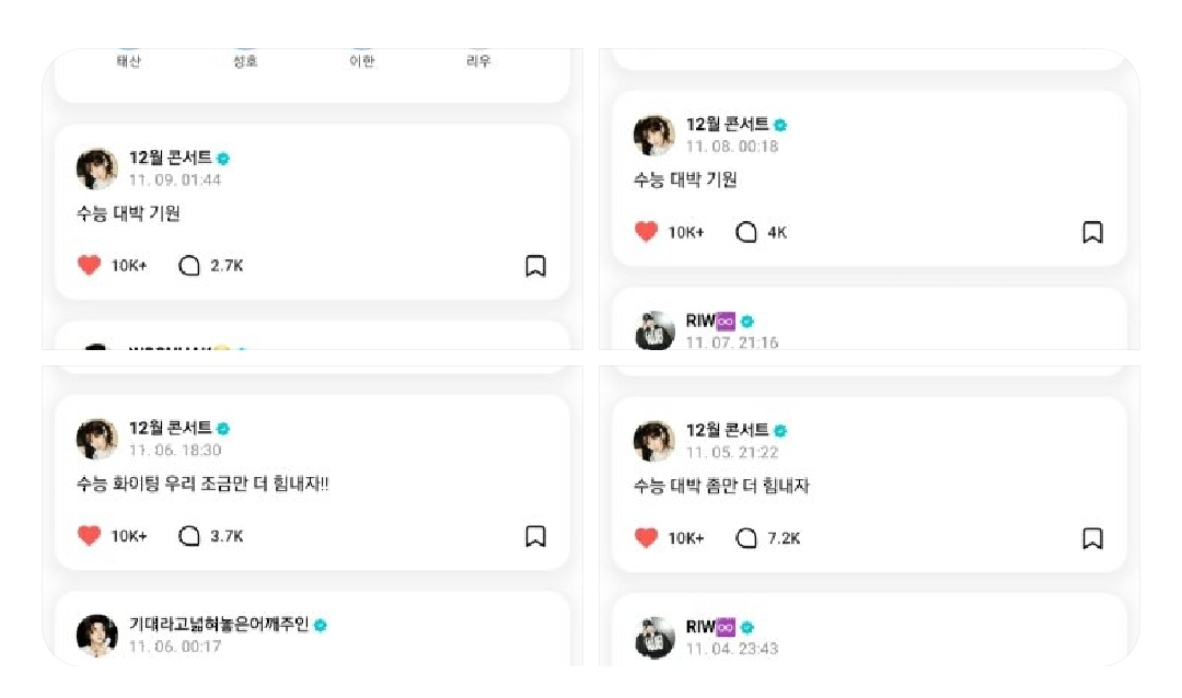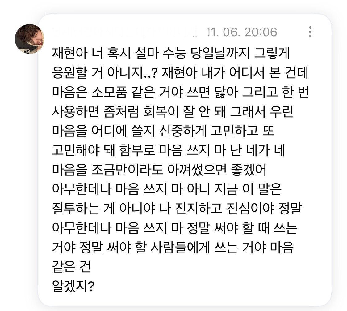 [스크랩] [흥미돋]연예인들이 버블에서 수능 응원하면 생기는 일 작성자운석열 미쳤음|작성시간24.11.13|조회수10,566 목록 댓글 65 글자크기 작게가 글자크기 크게가 출처: 여성시대 샤브홀릭 왜저러냐 진짜.... 다음검색 스크랩 원문 : *여성시대* 차분한 20대들의 알흠다운 공간 현재 게시글 추가 기능 열기 북마크 공유하기 신고 센터로 신고 댓글 댓글 65 댓글쓰기 답글쓰기 댓글 리스트 작성자뭐하냐고 | 작성시간 24.11.13 왜저래 진짜... 뭔 수능 응원하는것도 질투를 하냐 작성자머락오머띿오 | 작성시간 24.11.13 아 막짤 ㅈㄴ웃기네 ㅋㅋㅋㅋㅋㅋㅋㅋㅋㅋ 작성자오늘야구합니꺼 | 작성시간 24.11.13 아진짜 피곤할듯 좀 그냥 응원해 작성자피넛땅콩 | 작성시간 24.11.13 뭔... 어휴 별 작성자포푸링 | 작성시간 24.11.13 븅신인가 ㅋㅋㅋㅋ죄다 수험생보다 나이많을텐데 적당히좀하지 정병이야뭐야 ㅋㅋㅋ 댓글 전체보기