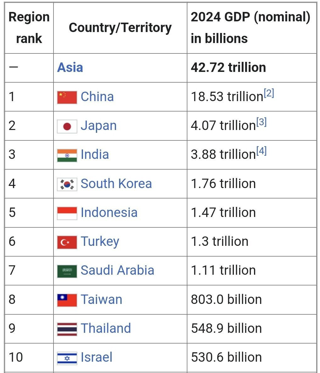 [ 일본의 4.5배 한국의 10배수준으로 아시아에서 압도적인 중국 GDP ]