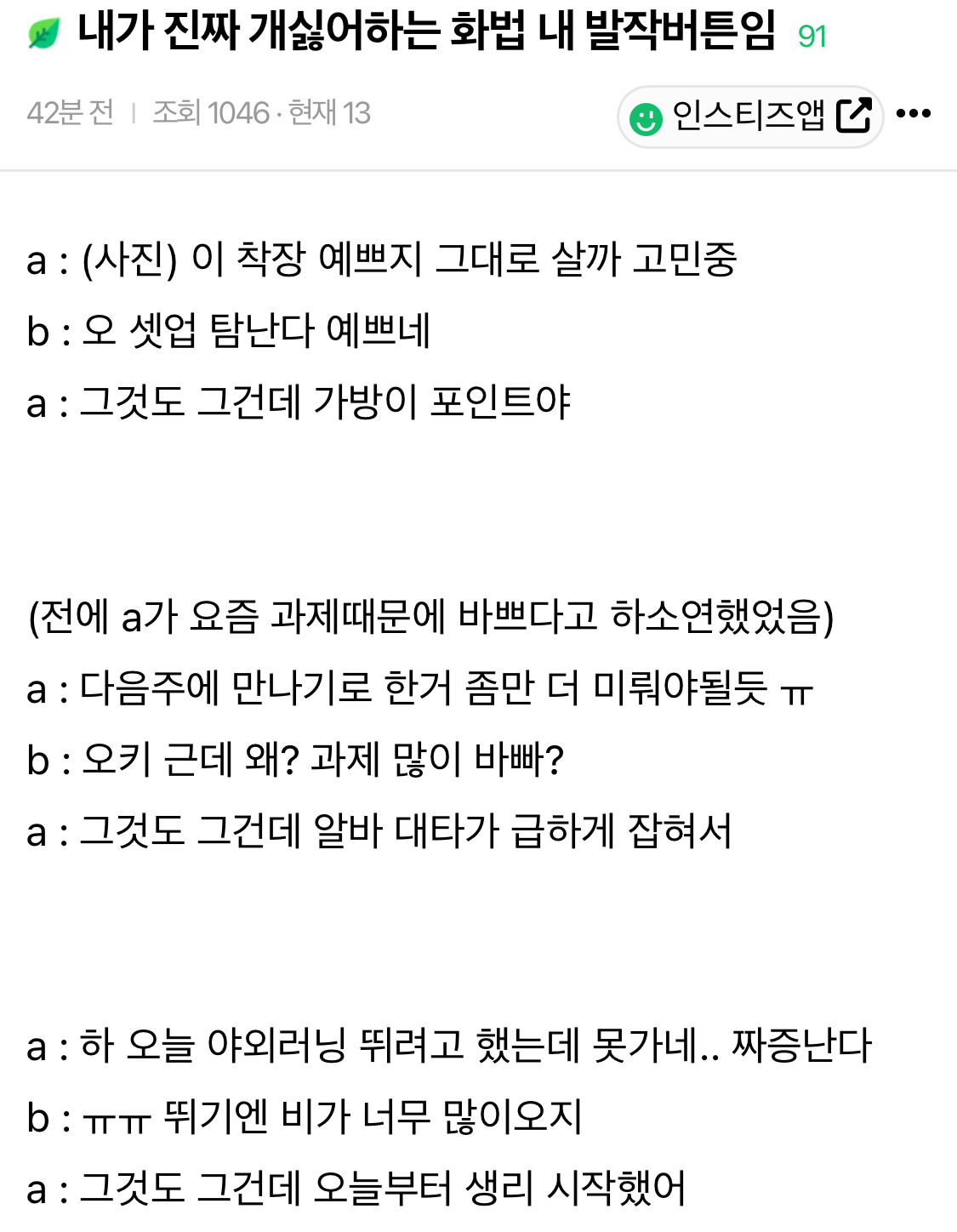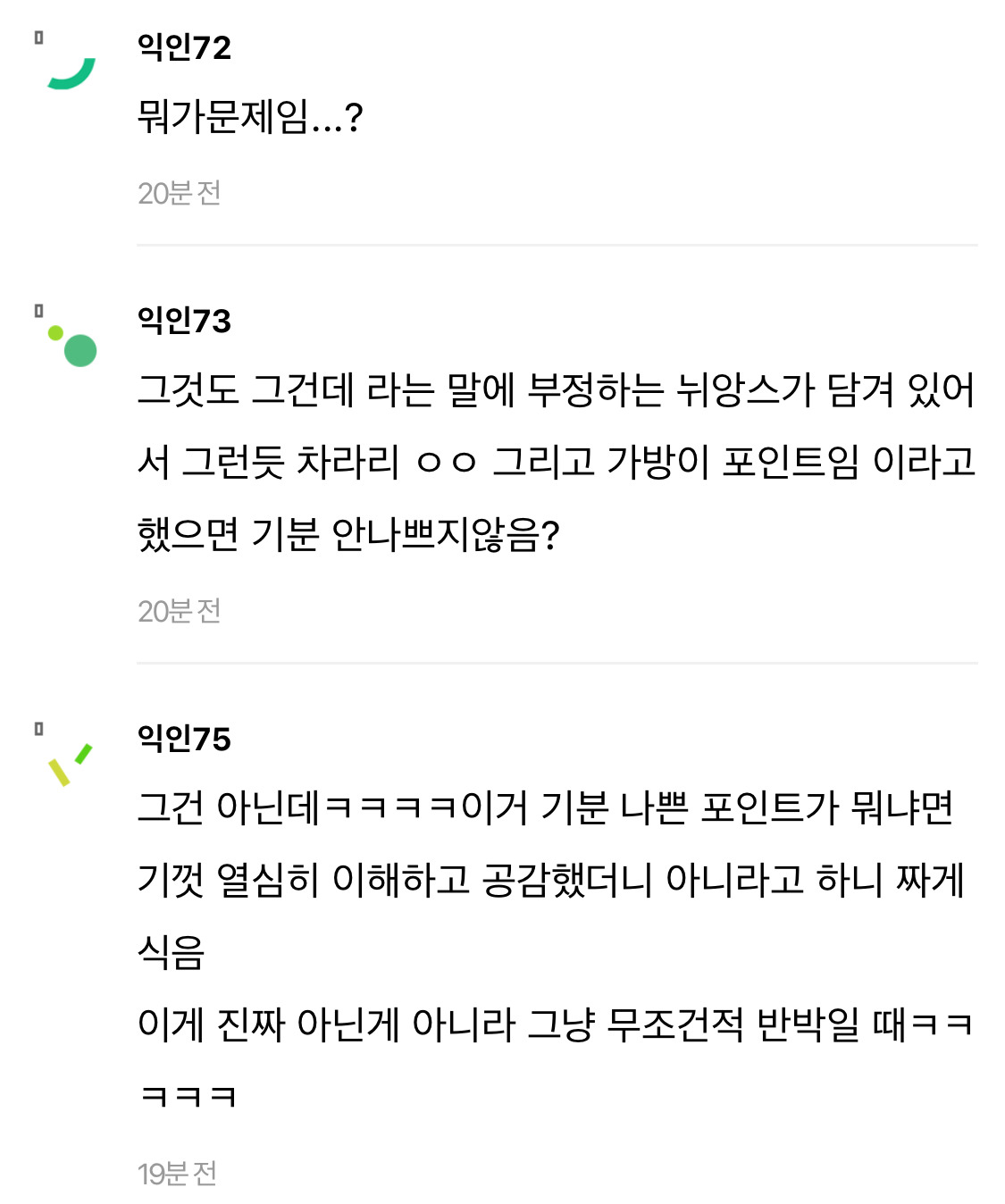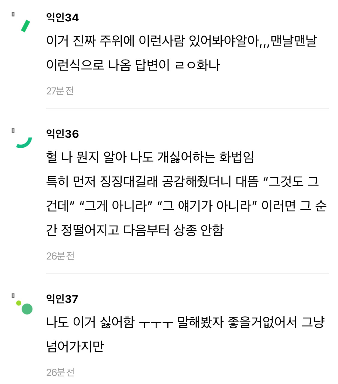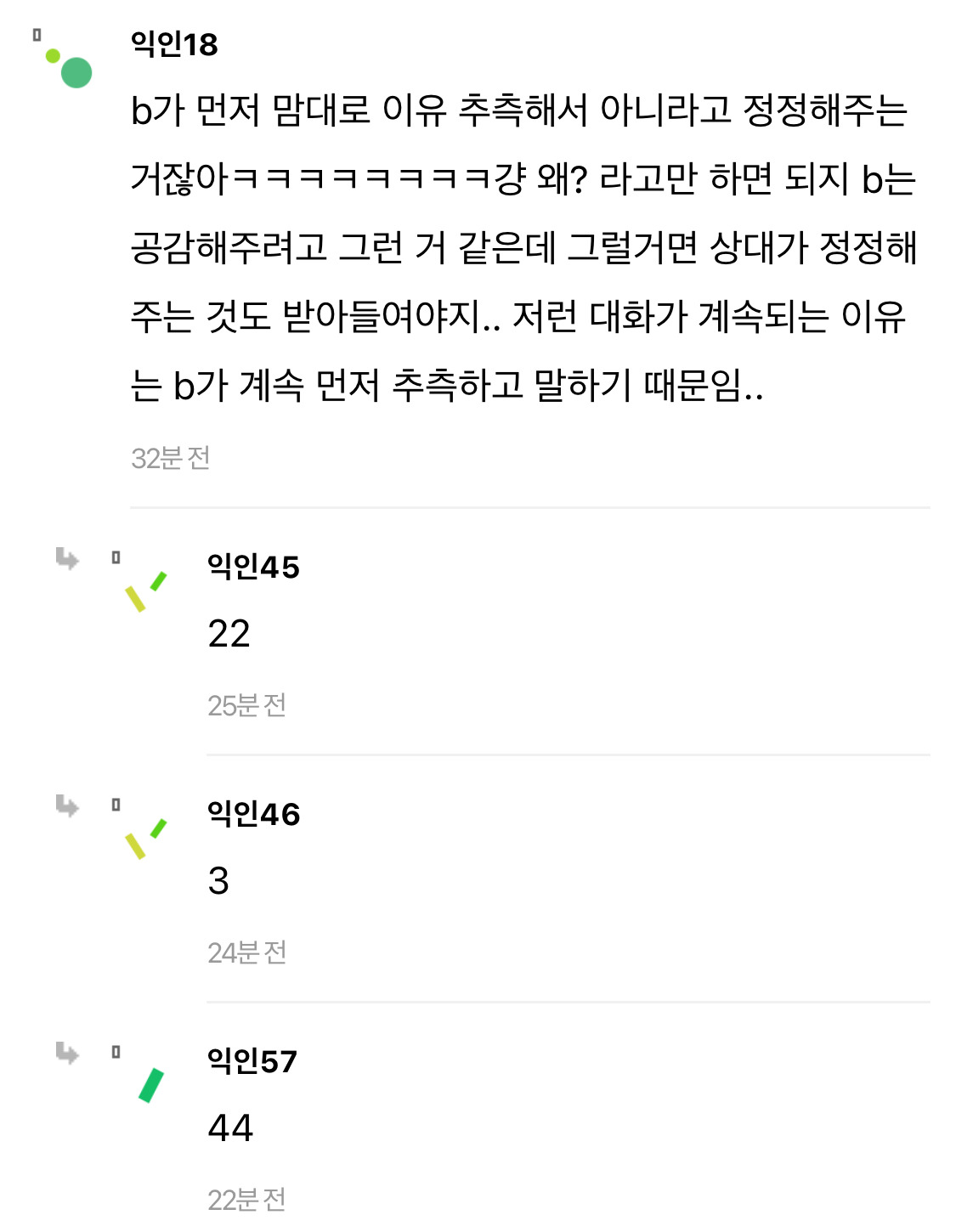 작성자엔트로피 작성시간 24.11.19 뭘표현했는지는 알거걑애.. entp같은사람들이 저렇더라 자기가생각한거명확히 집어주지않으면 저래 스타일차이