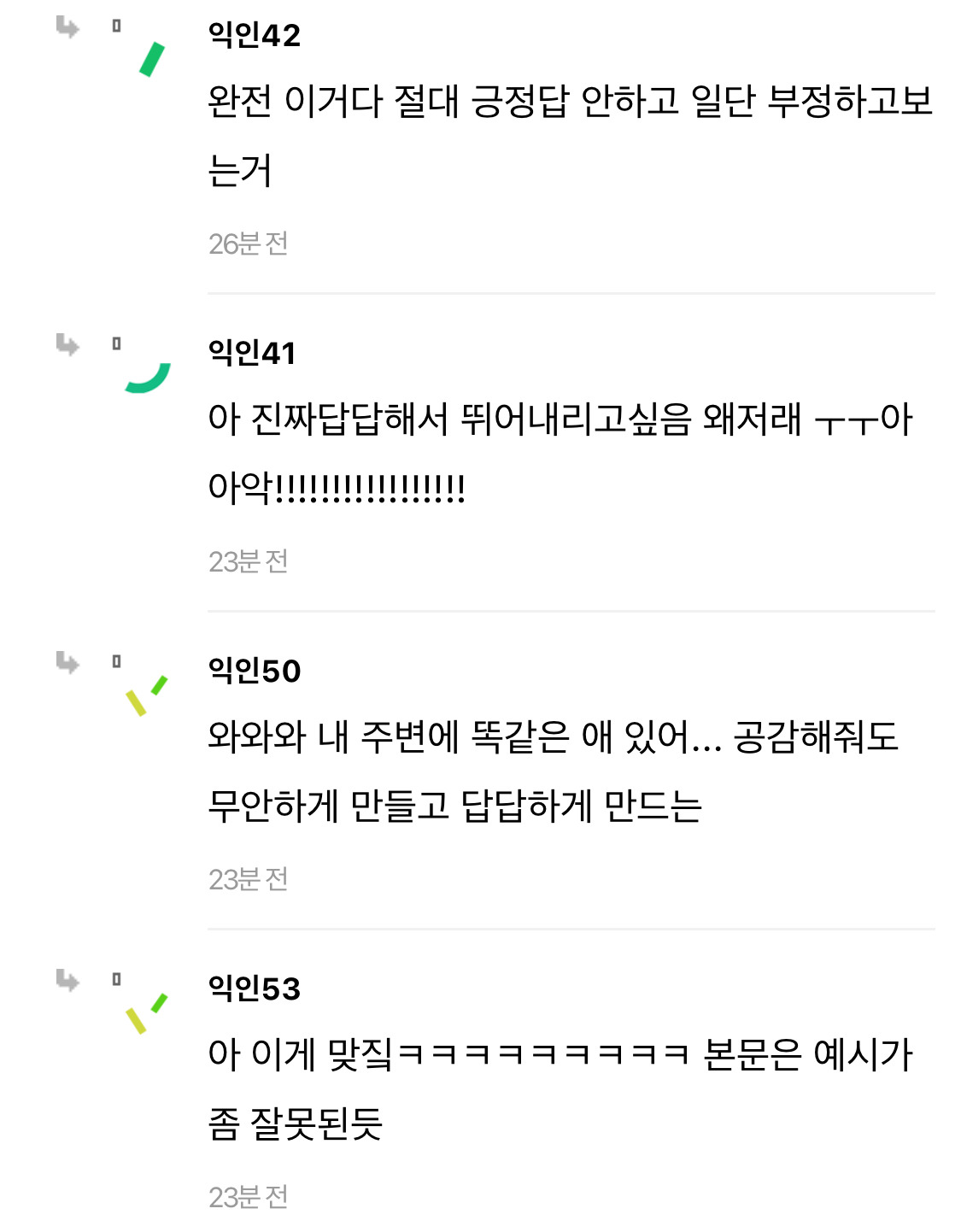 작성자선풍기살인마 작성시간 24.11.19 아 맞아ㅠㅠ 나도 그런 사람 한명 있는데 안 맞아… 일단 다 아니래 들어보면 그게 맞아 시벌